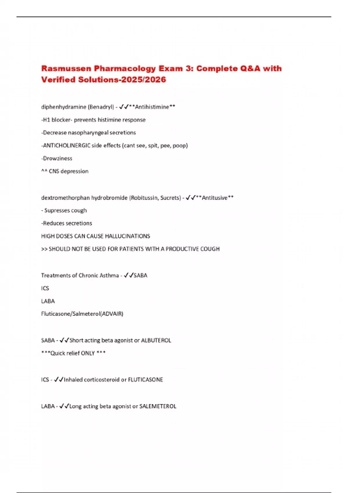 Rasmussen Pharmacology Exam 3: Complete Q&A with Verified Solutions-2025/2026