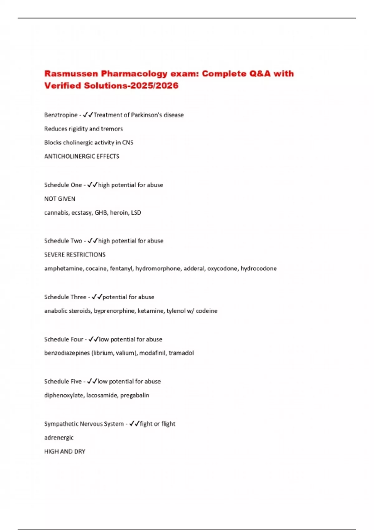 Rasmussen Pharmacology exam: Complete Q&A with Verified Solutions-2025/2026