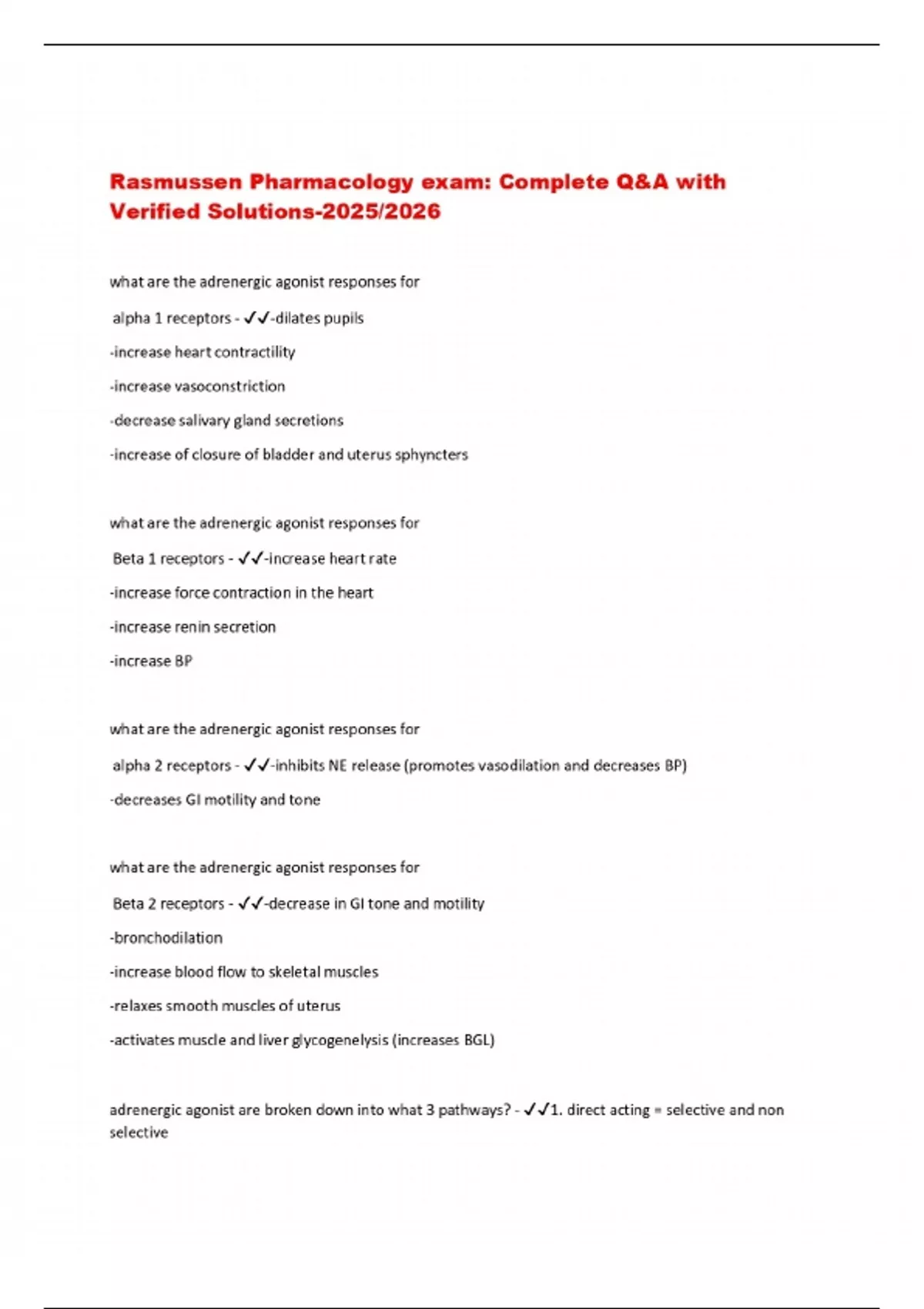 Rasmussen Pharmacology exam: Complete Q&A with Verified Solutions-2025/2026