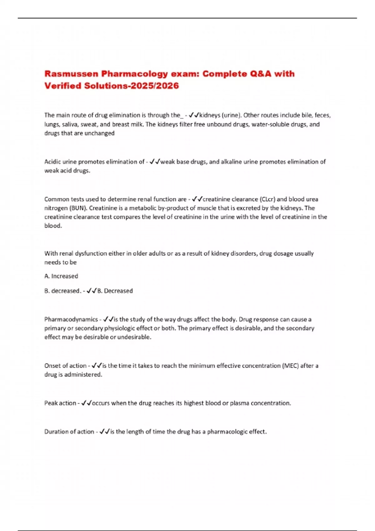 Rasmussen Pharmacology exam: Complete Q&A with Verified Solutions-2025/2026