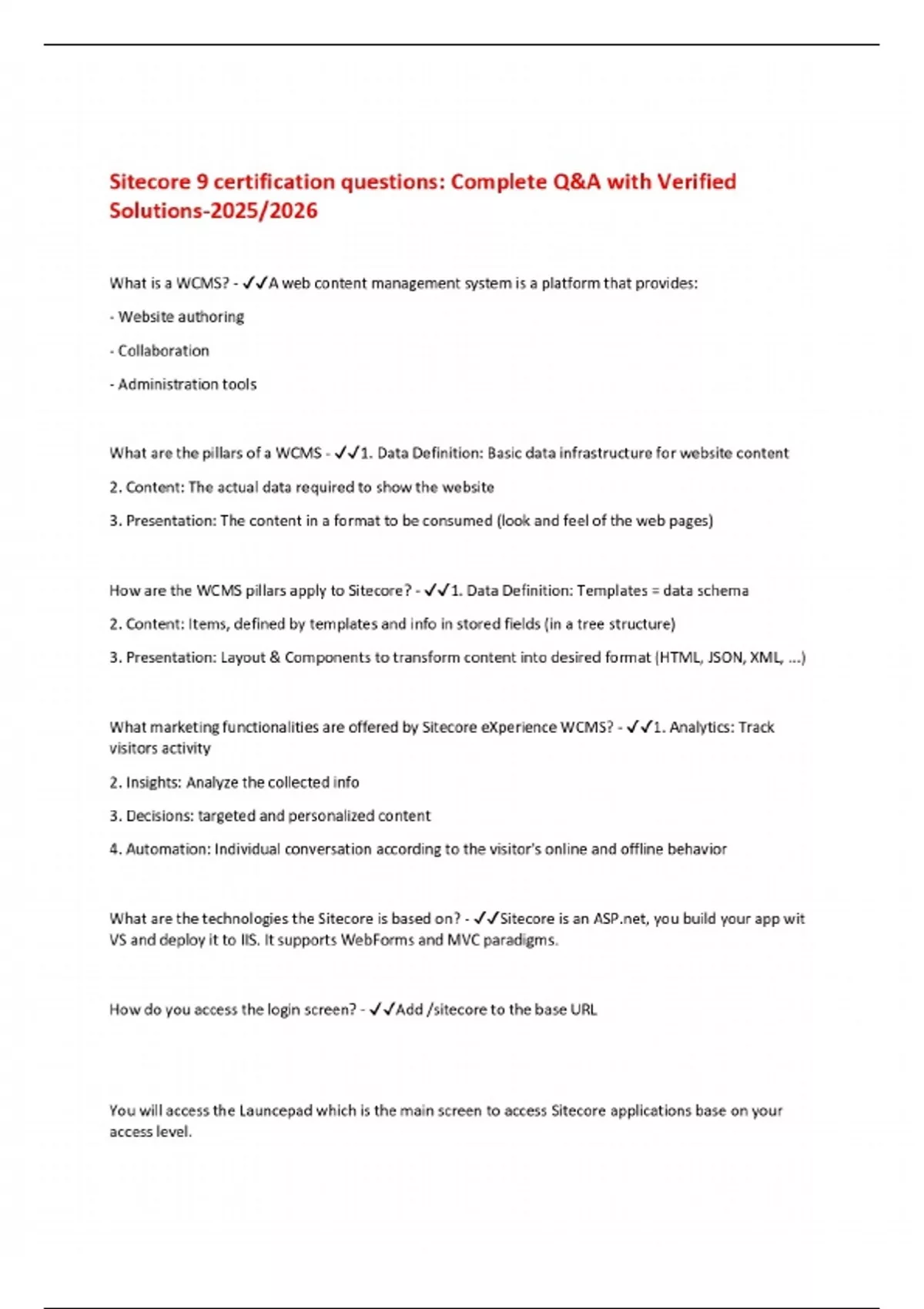 sitecore 9 certification questions complete qa w