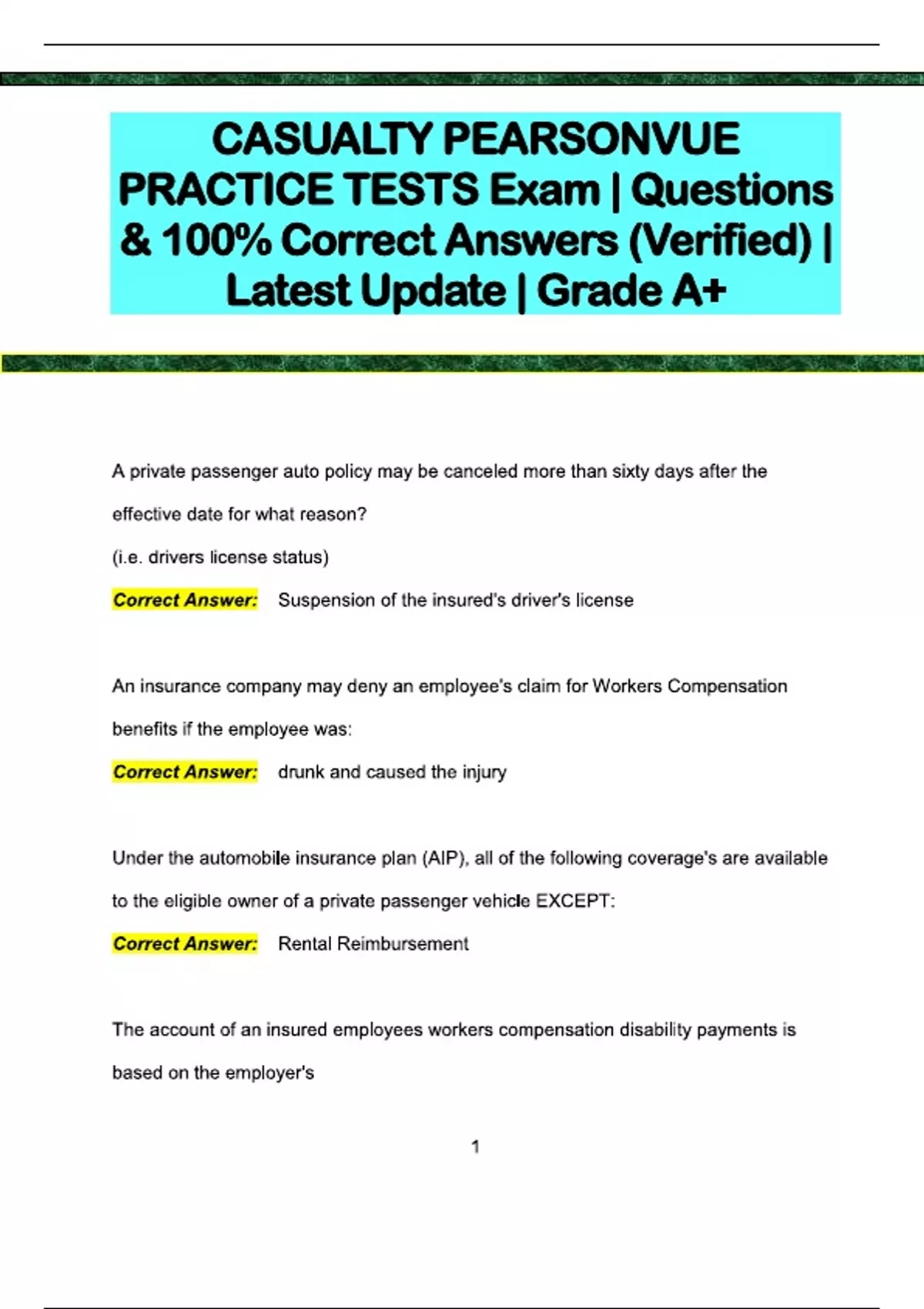 Casualty pearsonvue practice tests exam