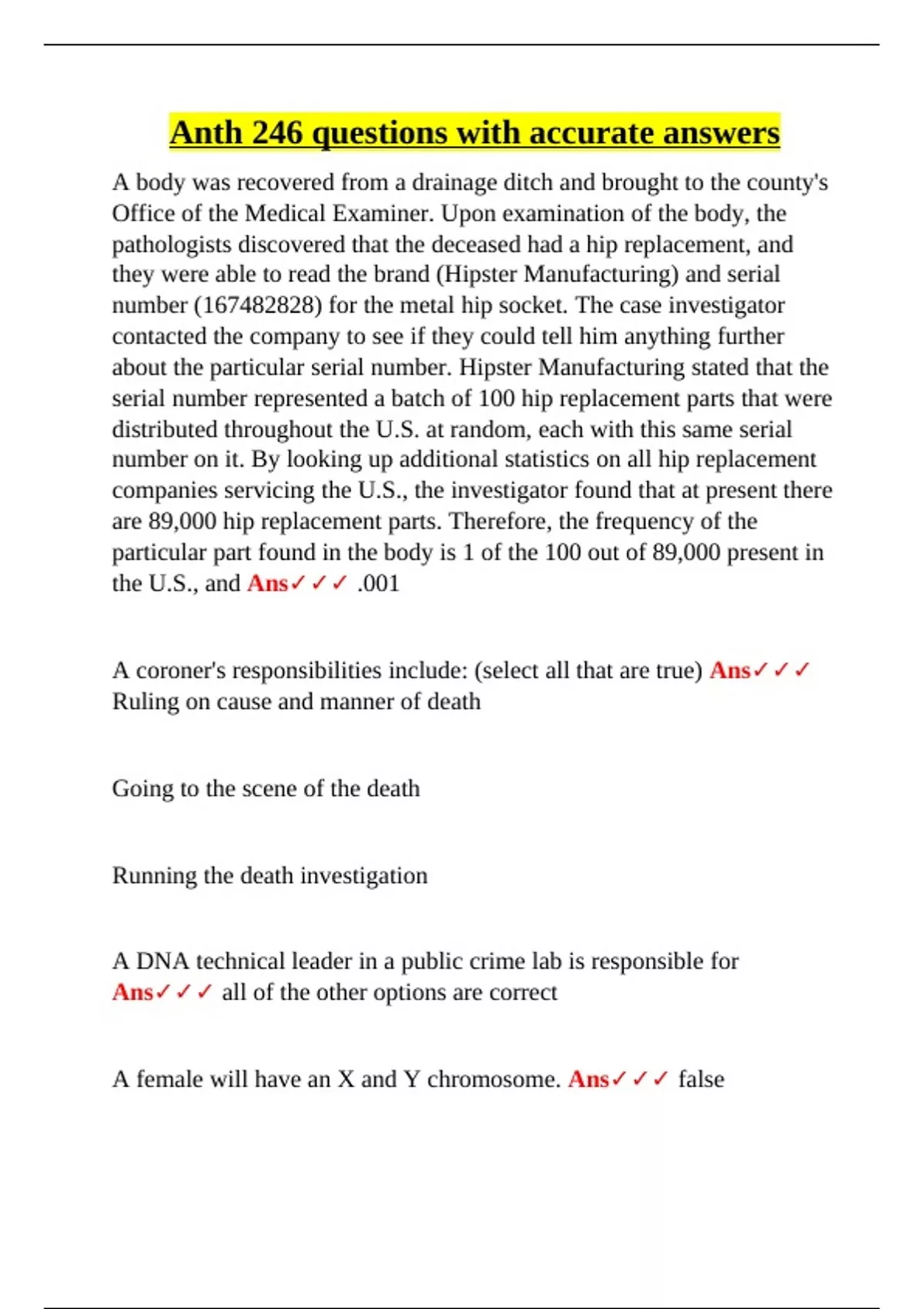 A female will have an X and Y chromosome. Ans✓✓✓ false