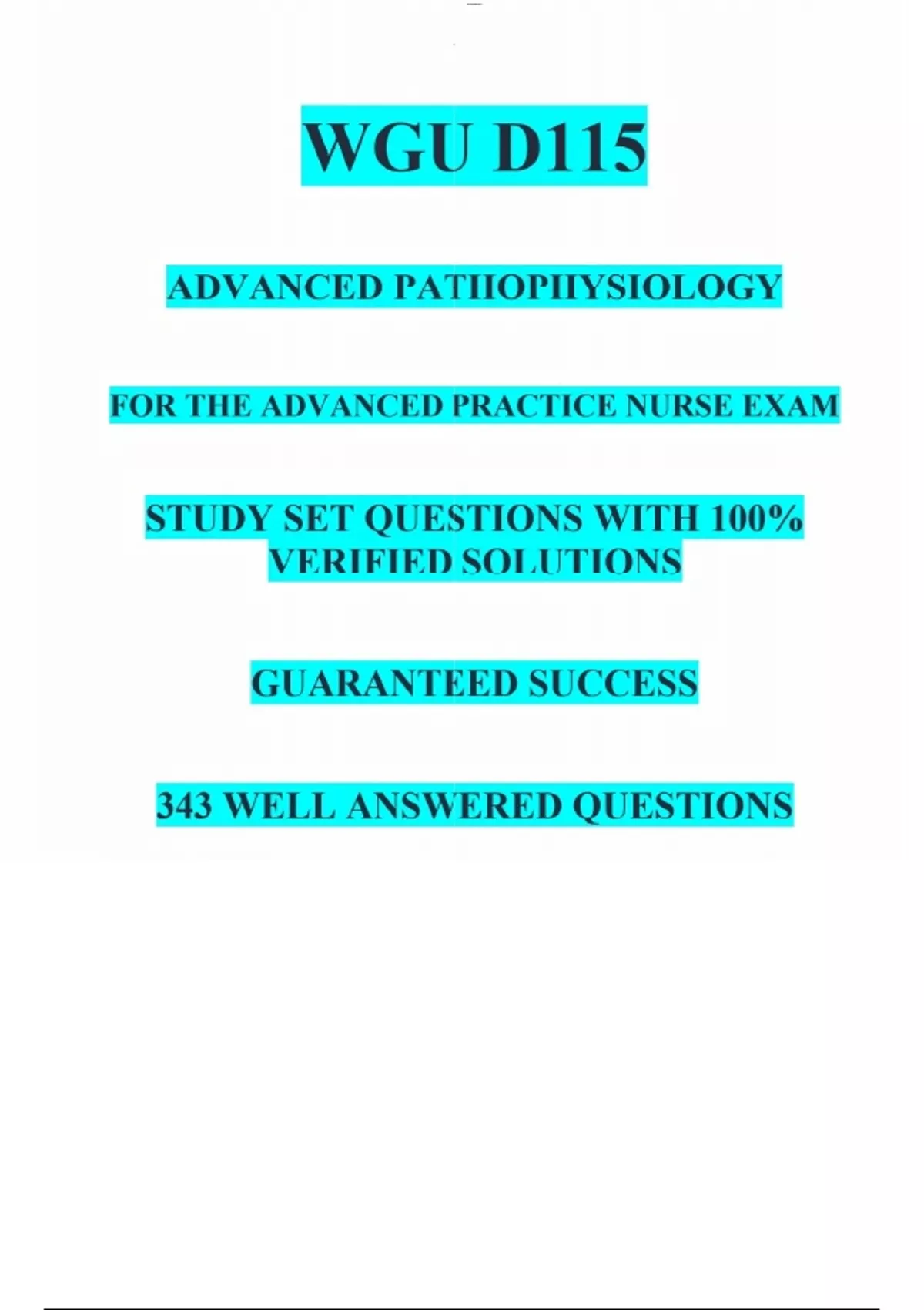 WGU D115 ADVANCED PATHOPHYSIOLOGY FOR THE ADVANCED PRACTICE NURSE EXAM STUDY SET QUESTIONS WITH 100% VERIFIED SOLUTIONS GUARANTEED SUCCESS 343 WELL ANSWERED QUESTIONS