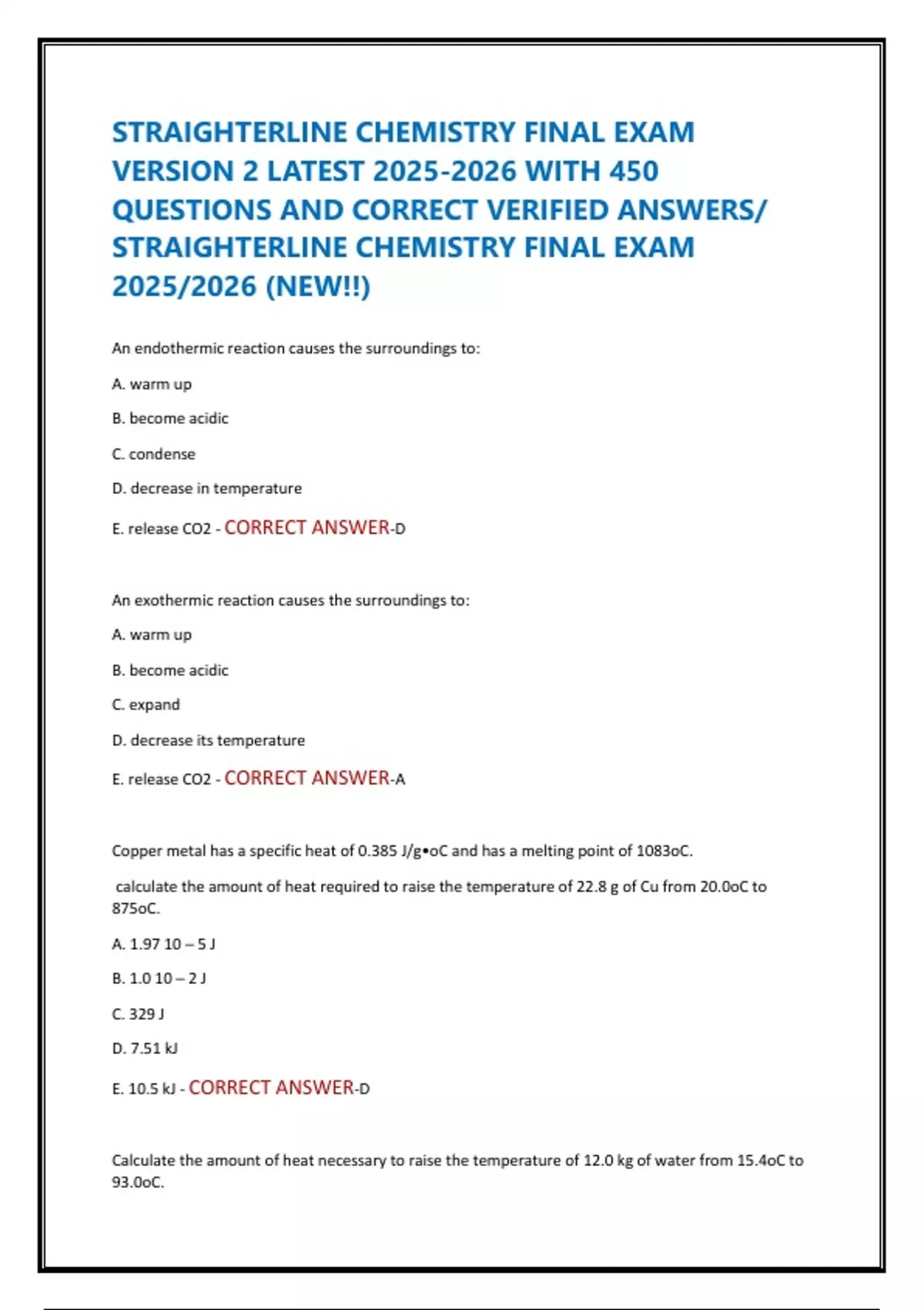 QUESTIONS AND CORRECT VERIFIED ANSWERS/