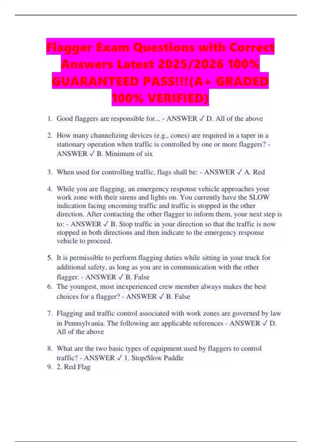 1. Good flaggers are responsible for... - ANSWER ✓ D. All of the above