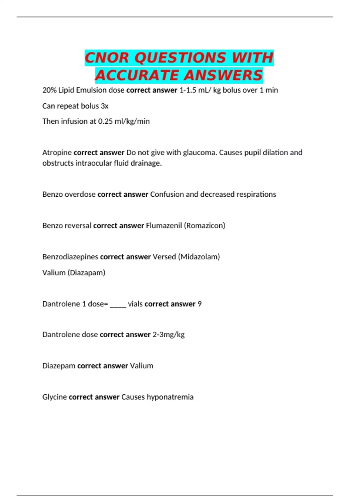 Benzodiazepines correct answer Versed (Midazolam)
