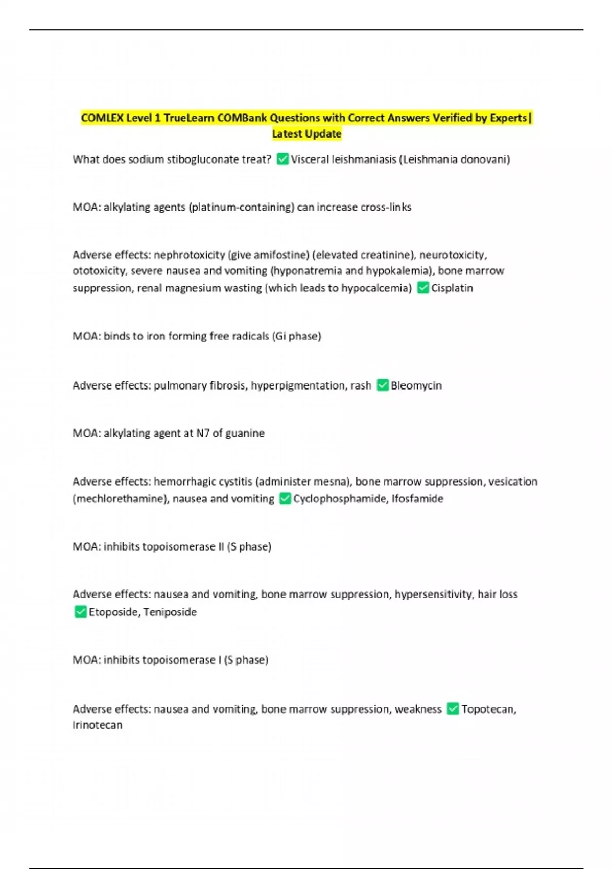 COMLEX Level 1 TrueLearn COMBank Questions with Correct Answers Verified by Experts| Latest Update