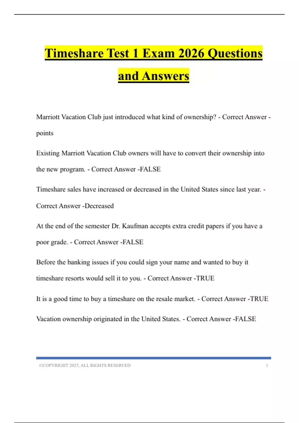 Timeshare Test 1 Exam 2026 Questions