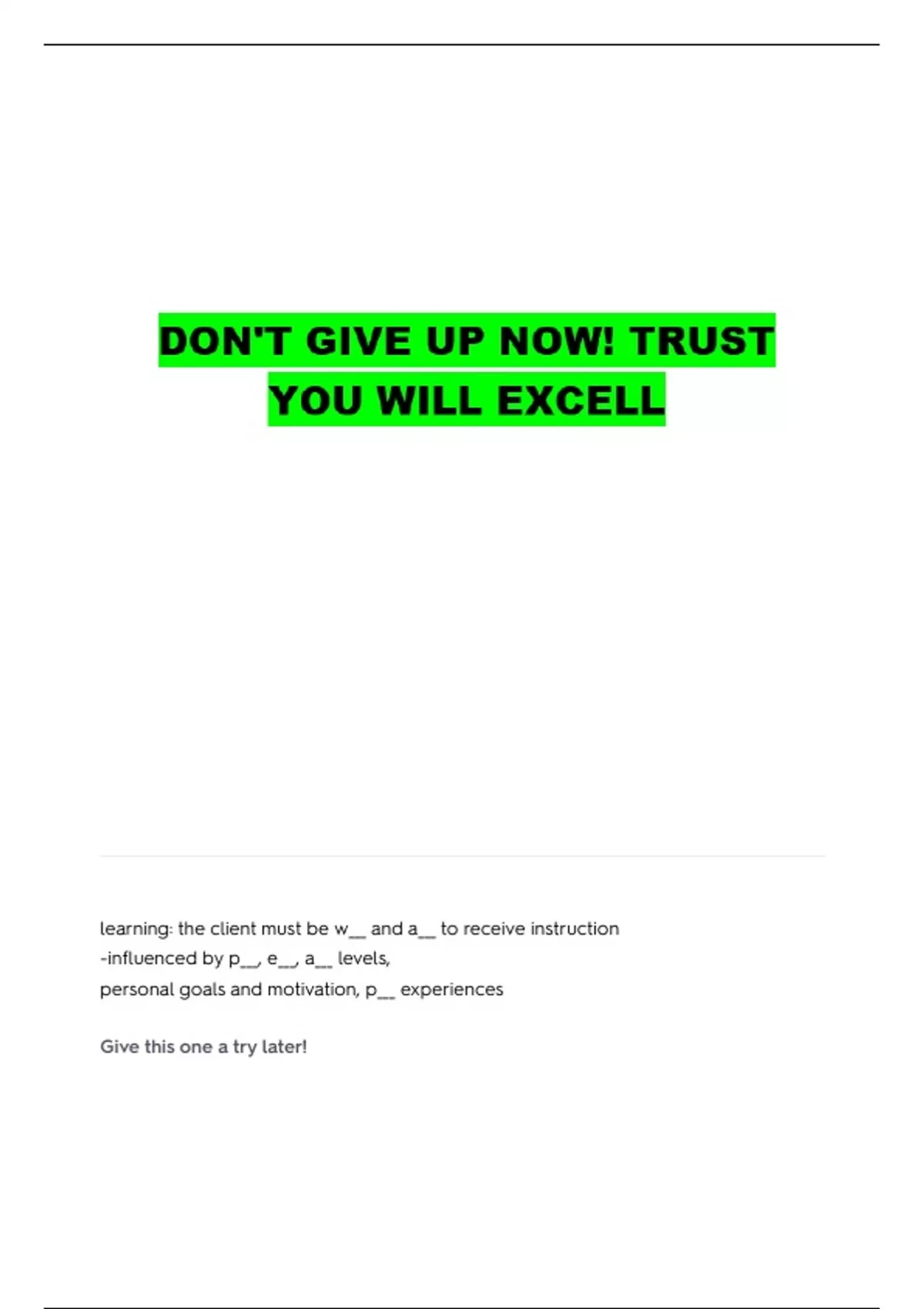 learning: the client must be w___ and a___ to receive instruction