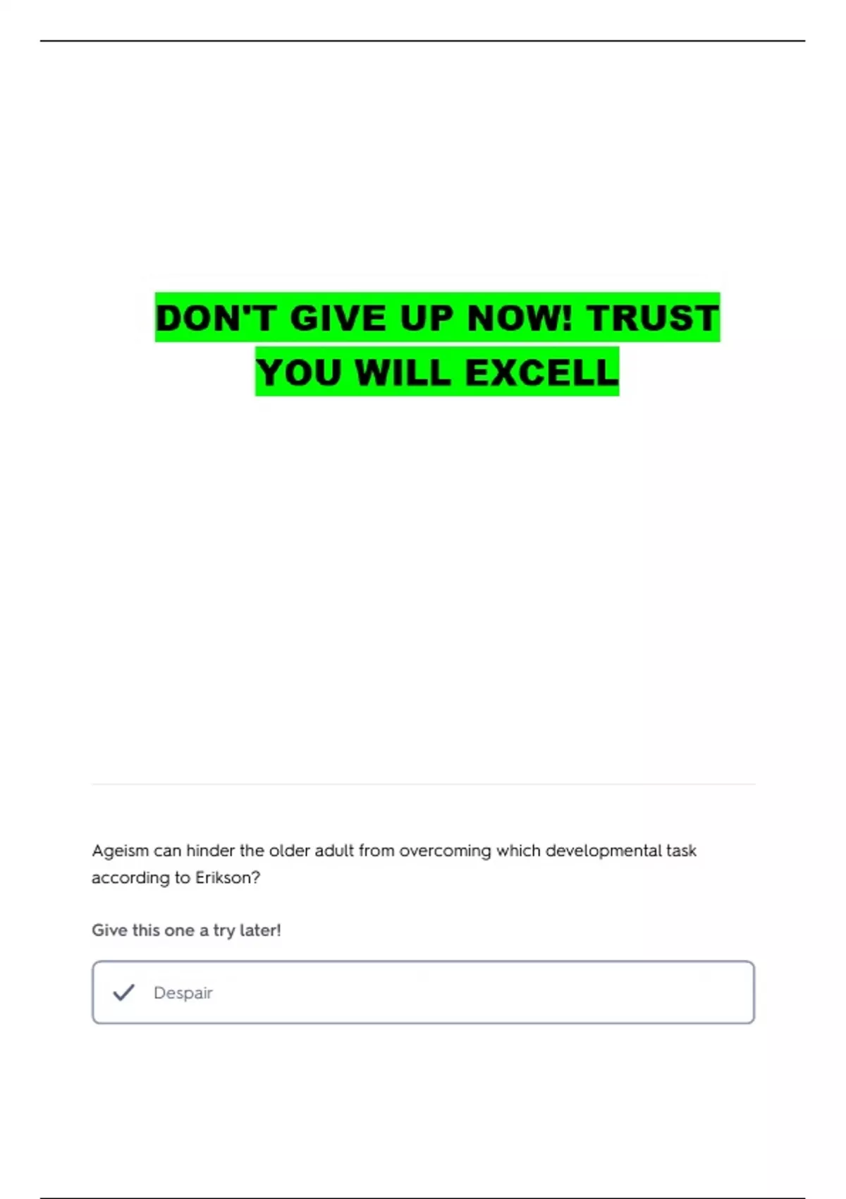 Ageism can hinder the older adult from overcoming which developmental task