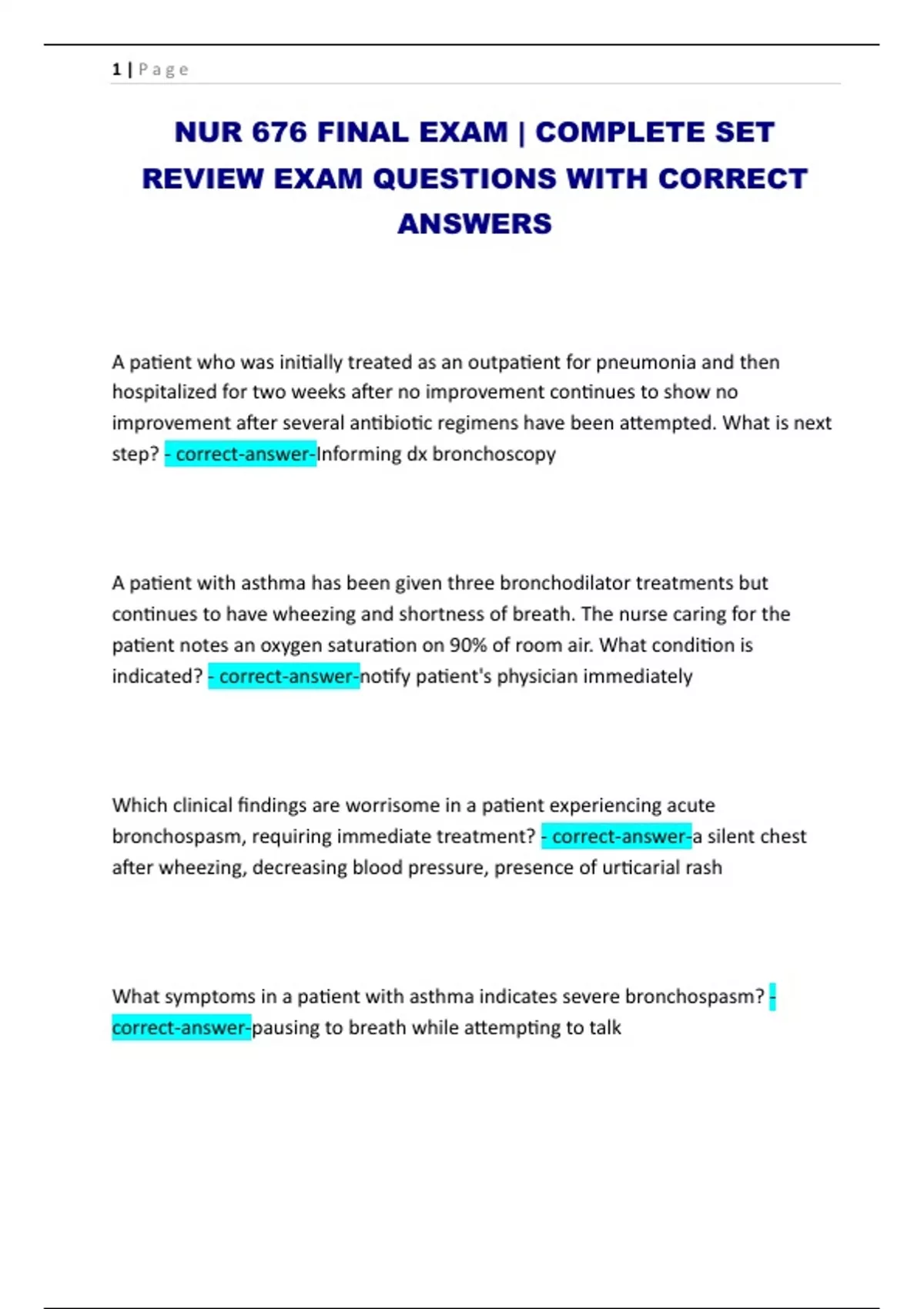 NUR 676 FINAL EXAM | COMPLETE SET