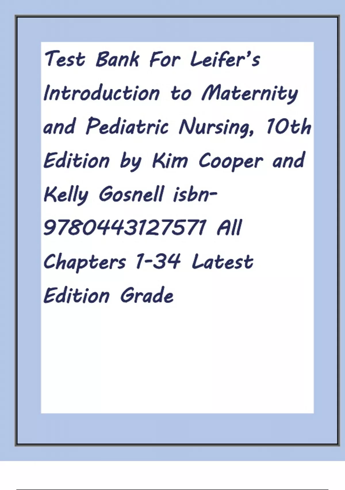 INTRODUCTION TO MATERNITY AND PEDIATRIC NURSING 8TH EDITION LEIFER