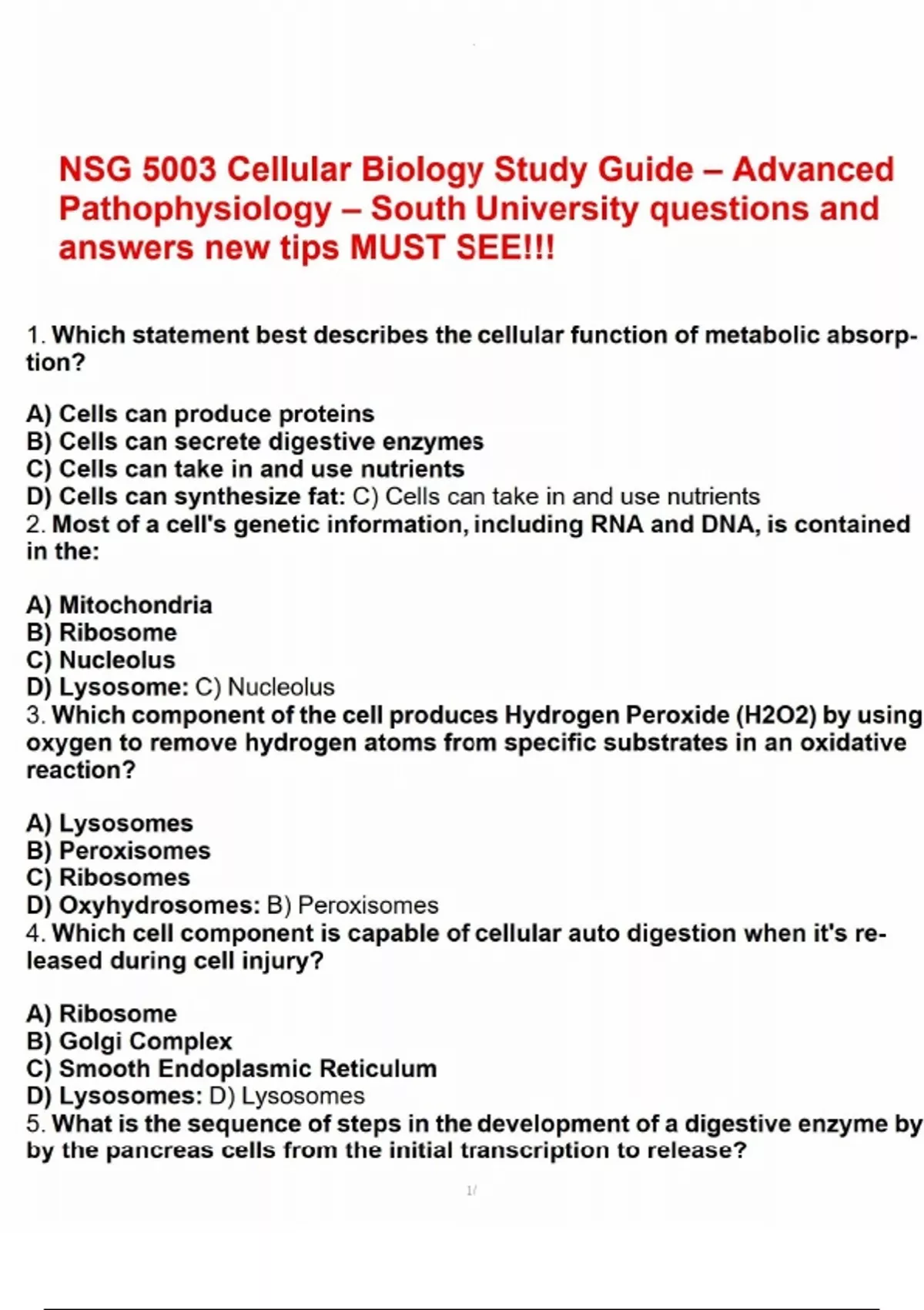 NSG 5003 Cellular Biology Study Guide – Advanced Pathophysiology – South University questions and answers new tips MUST SEE!!!.pdf