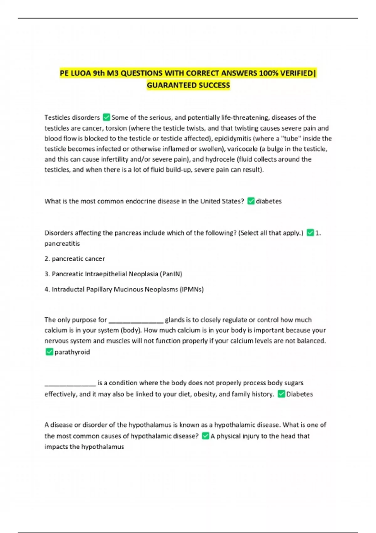 PE LUOA 9th M3 QUESTIONS WITH CORRECT ANSWERS 100% VERIFIED| GUARANTEED SUCCESS