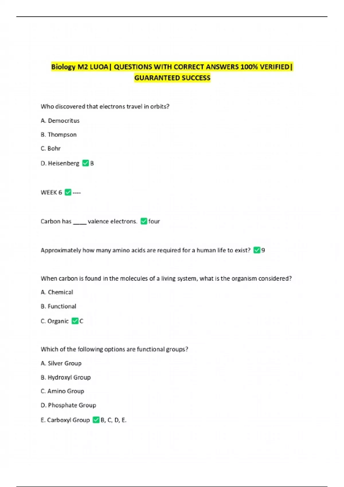 Biology M2 LUOA| QUESTIONS WITH CORRECT ANSWERS 100% VERIFIED| GUARANTEED SUCCESS