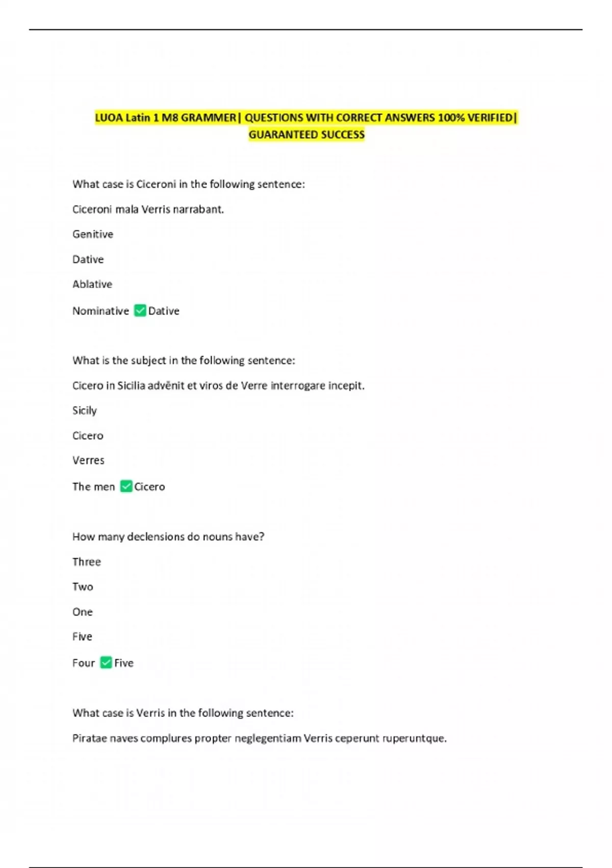 LUOA Latin 1 M8 GRAMMER| QUESTIONS WITH CORRECT ANSWERS 100% VERIFIED| GUARANTEED SUCCESS