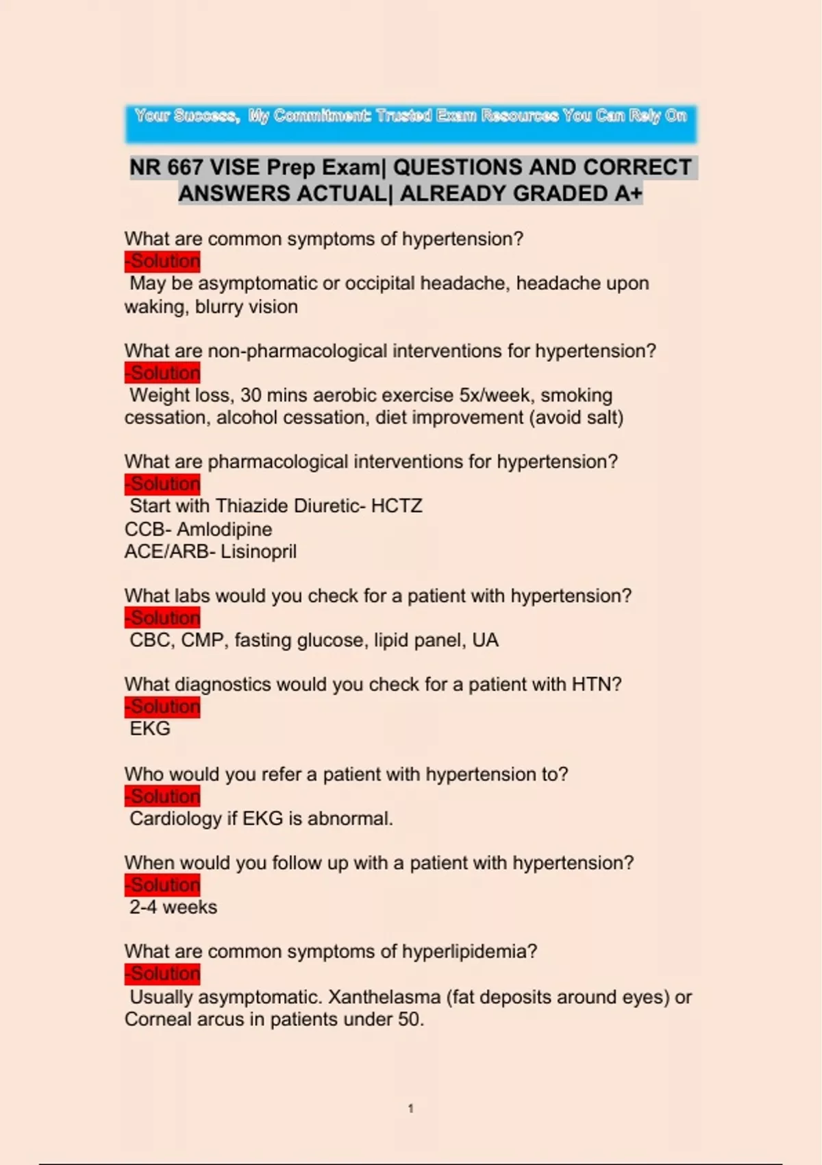 NR 667 VISE Prep Exam| QUESTIONS AND CORRECT