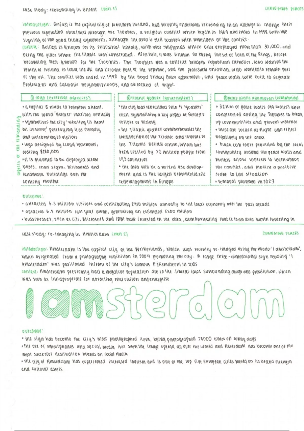 This is a case study on Amsterdam and Belfast as part of the a-level geography course. This case study is part of the changing places topic, looking at rebranding and re-imaging of places. Careful, not all schools do the same case studies!