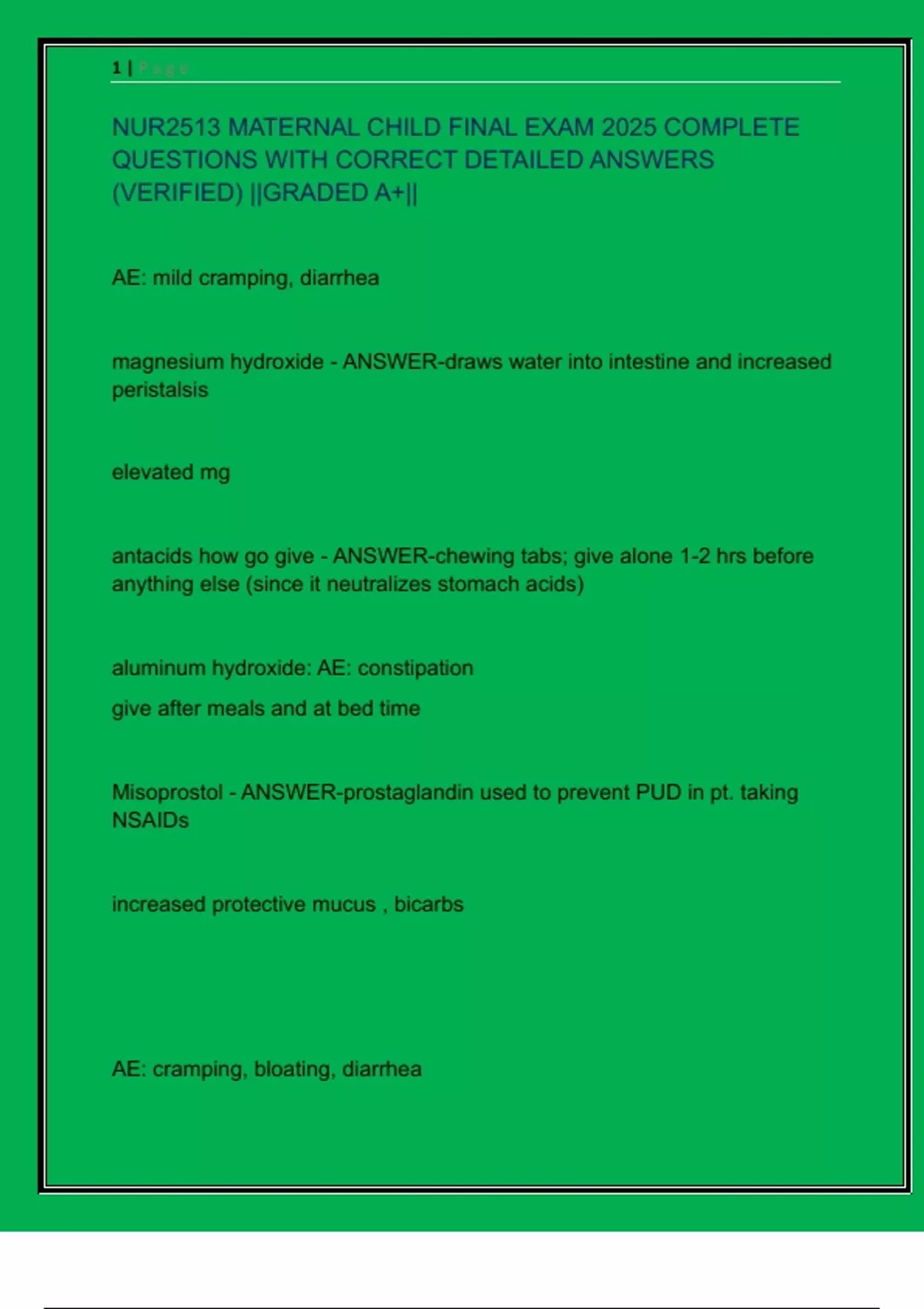 NUR2513 MATERNAL CHILD FINAL EXAM 2025 COMPLETE