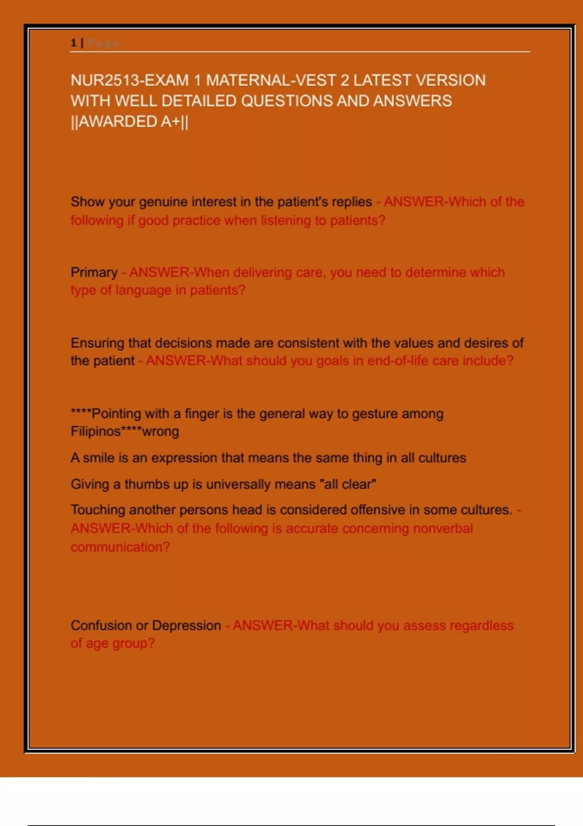 NUR2513-EXAM 1 MATERNAL-VEST 2 LATEST VERSION