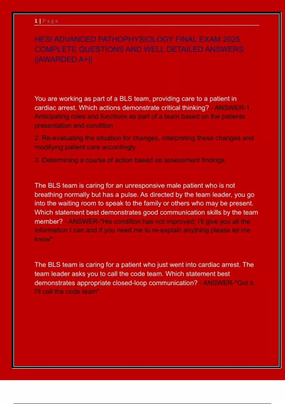cardiac arrest. Which actions demonstrate critical thinking? - ANSWER-1.