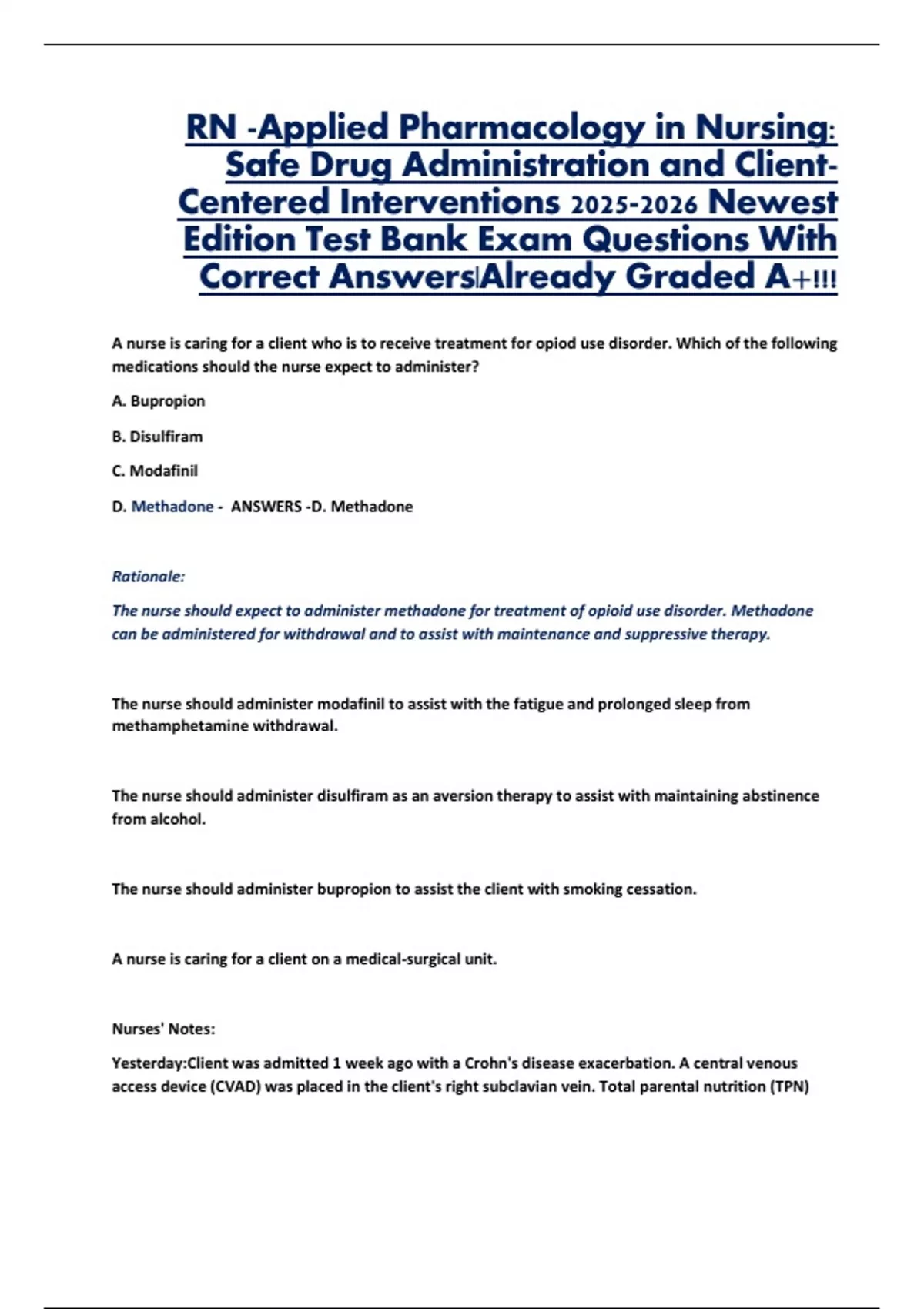 D. Methadone - ANSWERS -D. Methadone