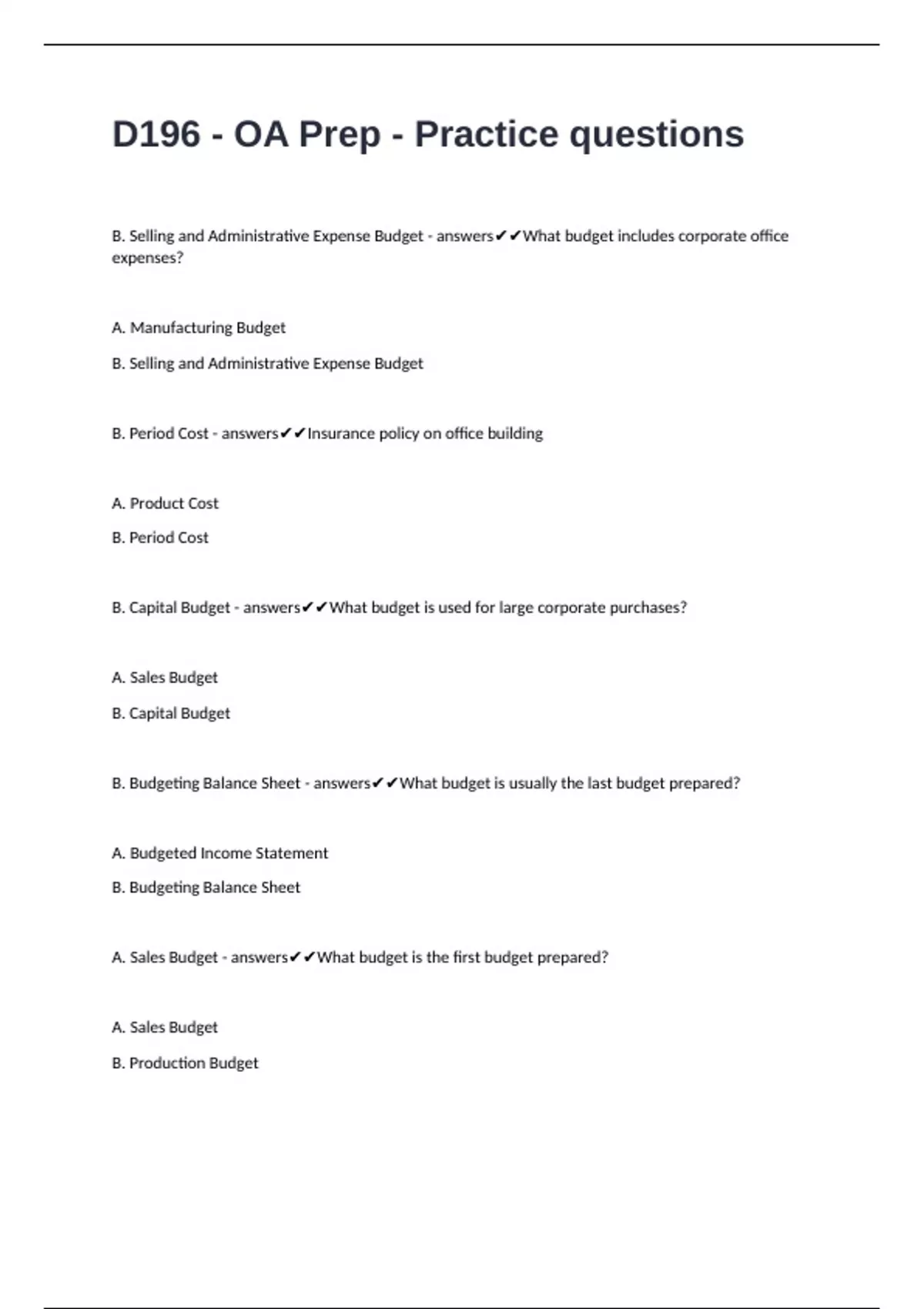 B. Selling and Administrative Expense Budget - answers✔✔What budget includes corporate office