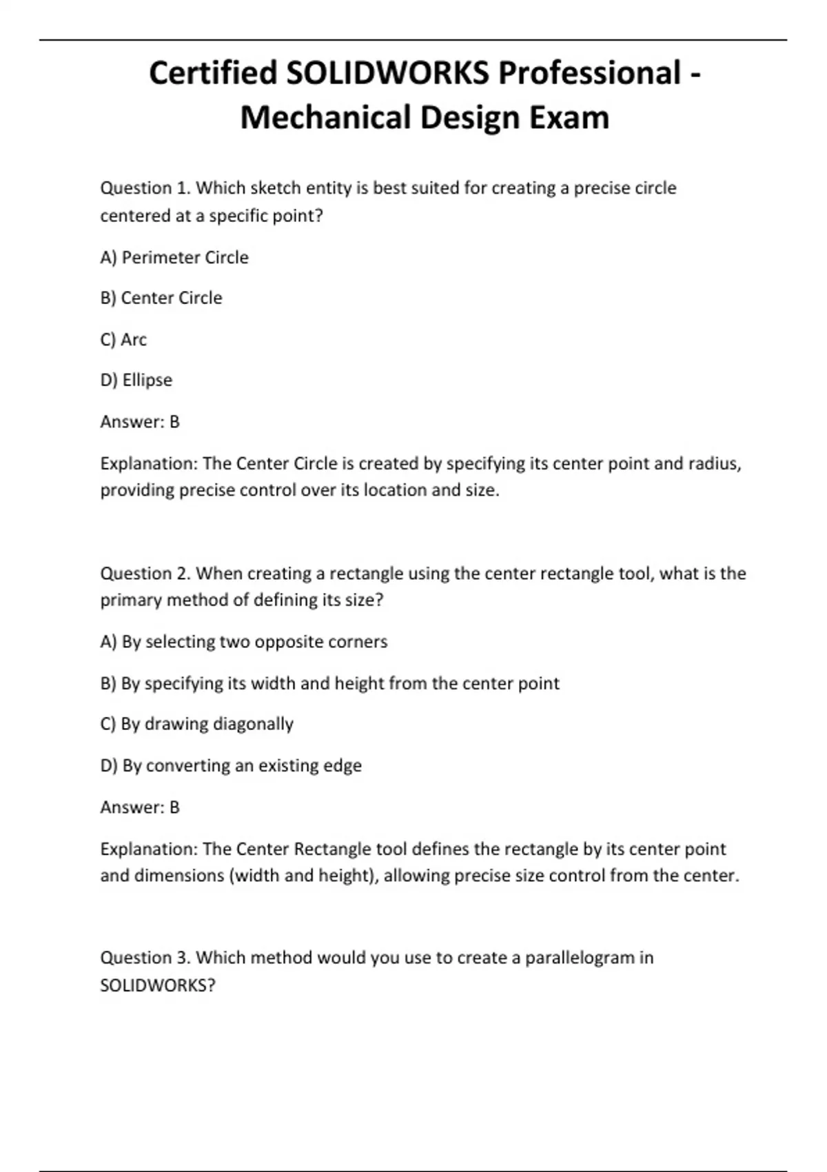 Question 1. Which sketch entity is best suited for creating a precise circle