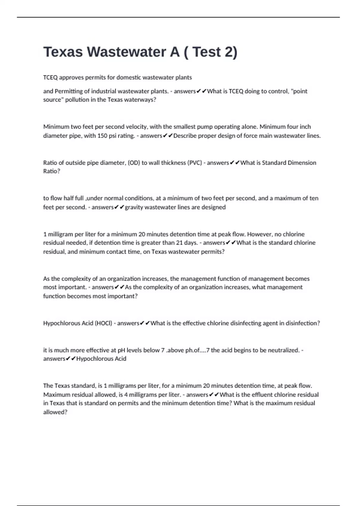 Texas Wastewater A ( Test 2)