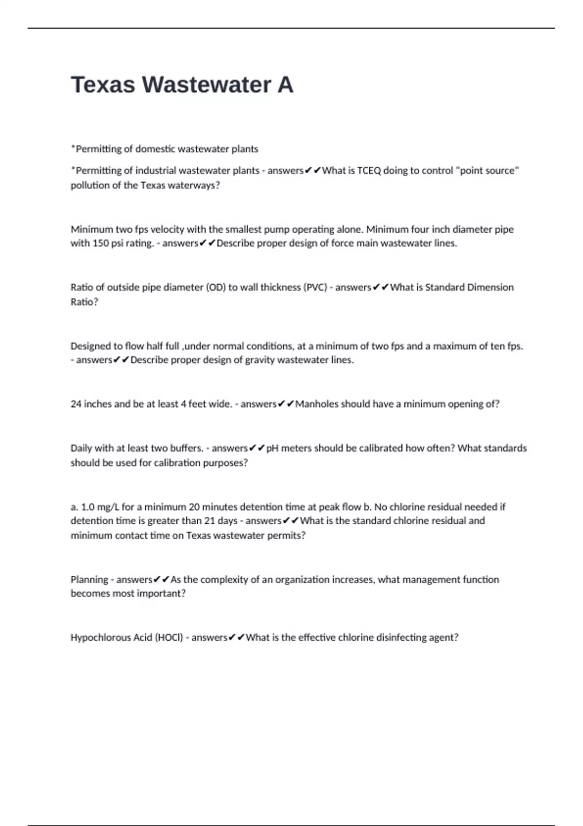 Texas Wastewater A questions and answers questions and answers questions and answers