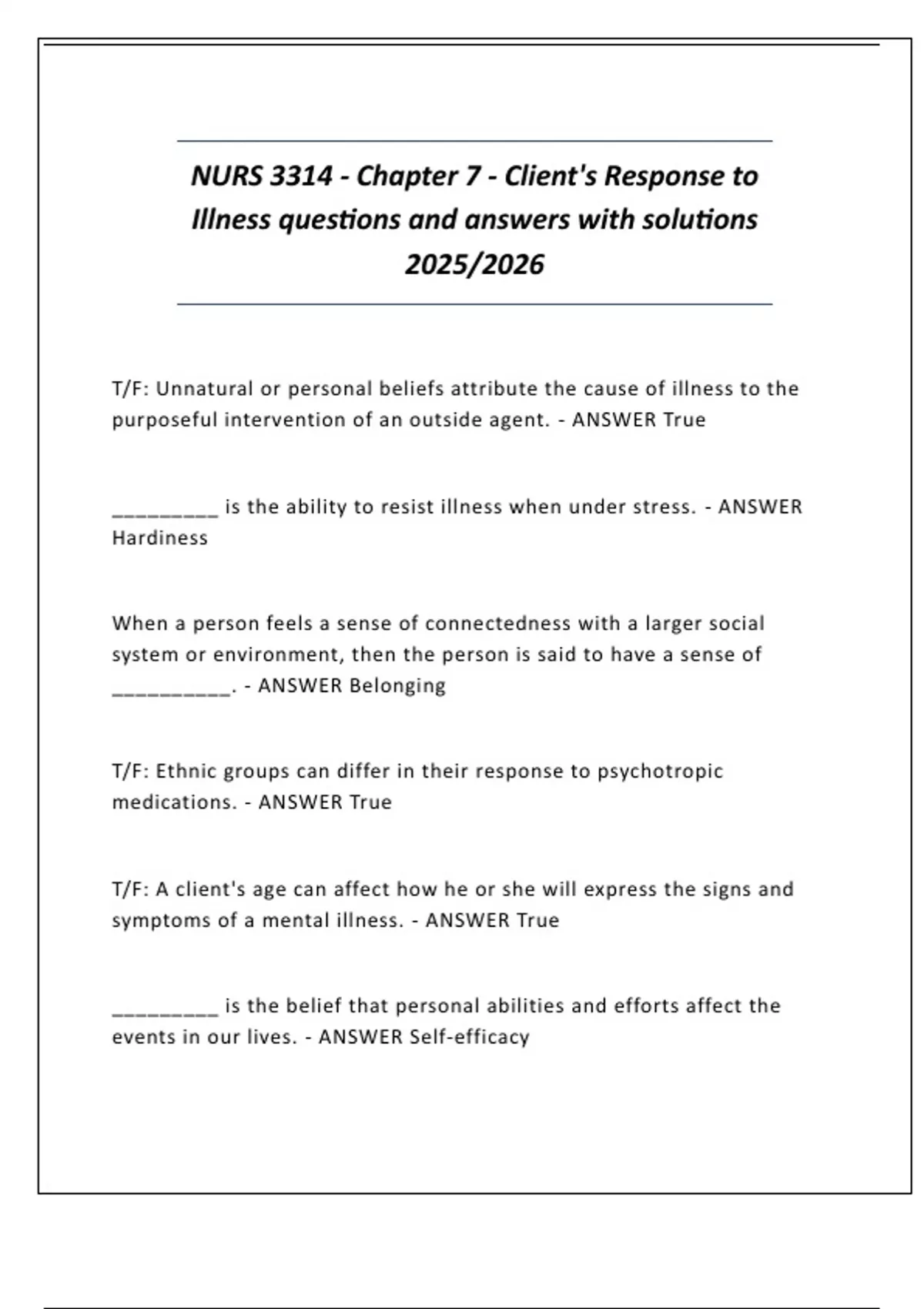 T/F: Unnatural or personal beliefs attribute the cause of illness to the