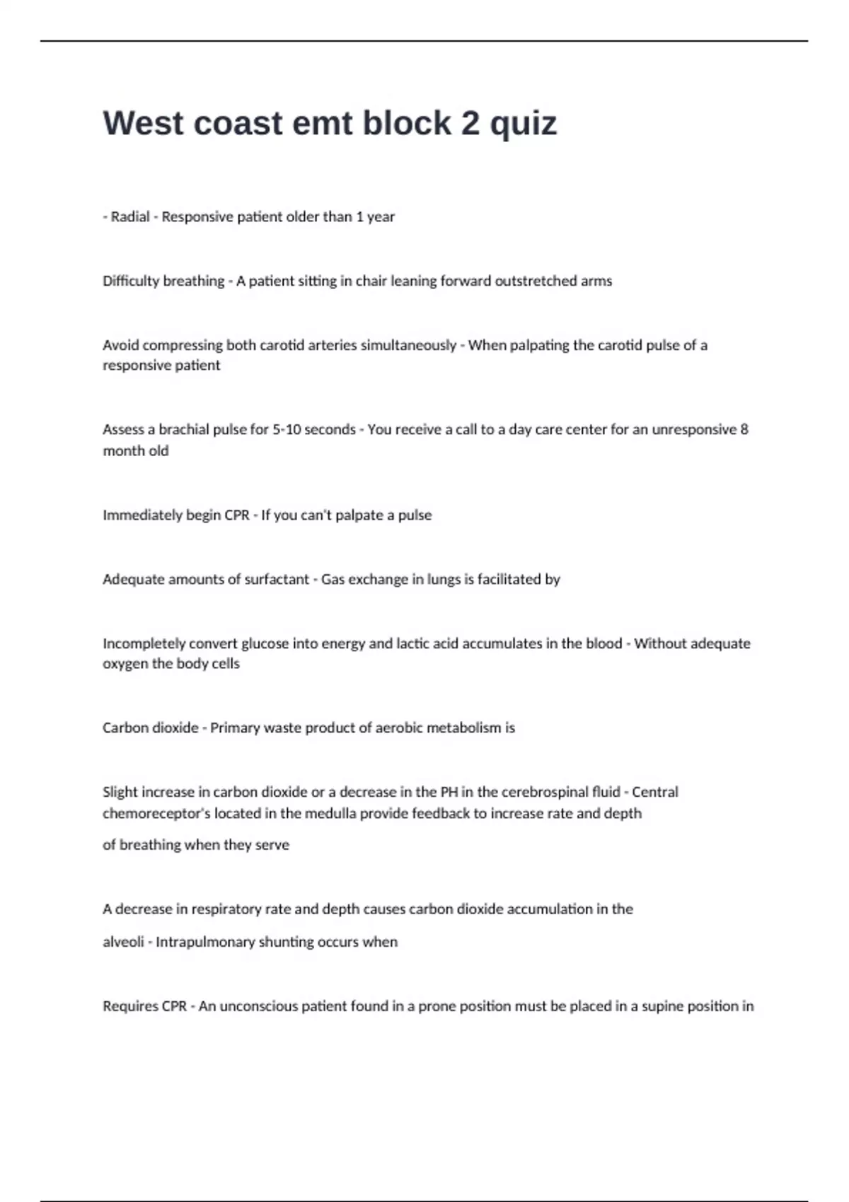 West coast emt block 2 quiz questions and answers questions and answers questions and answers