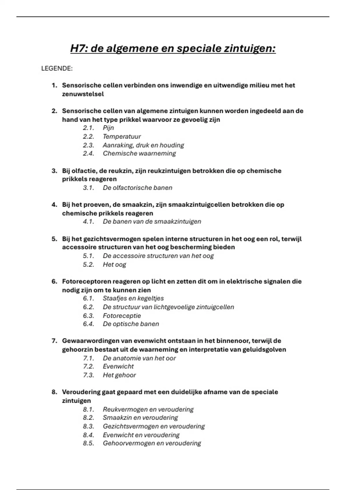1. Sensorische cellen verbinden ons inwendige en uitwendige milieu met het