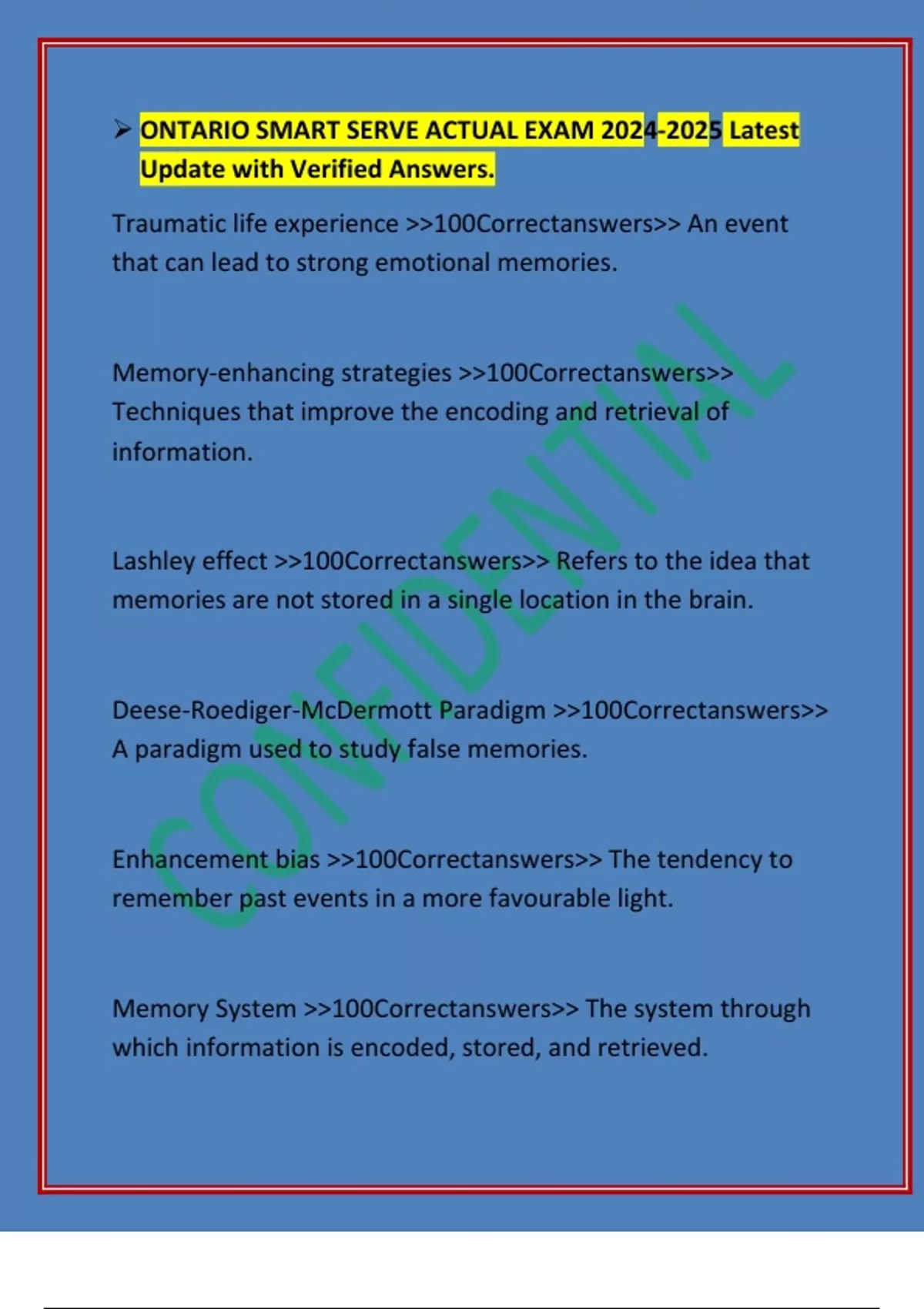 ➢ ONTARIO SMART SERVE ACTUAL EXAM 2024-2025 Latest