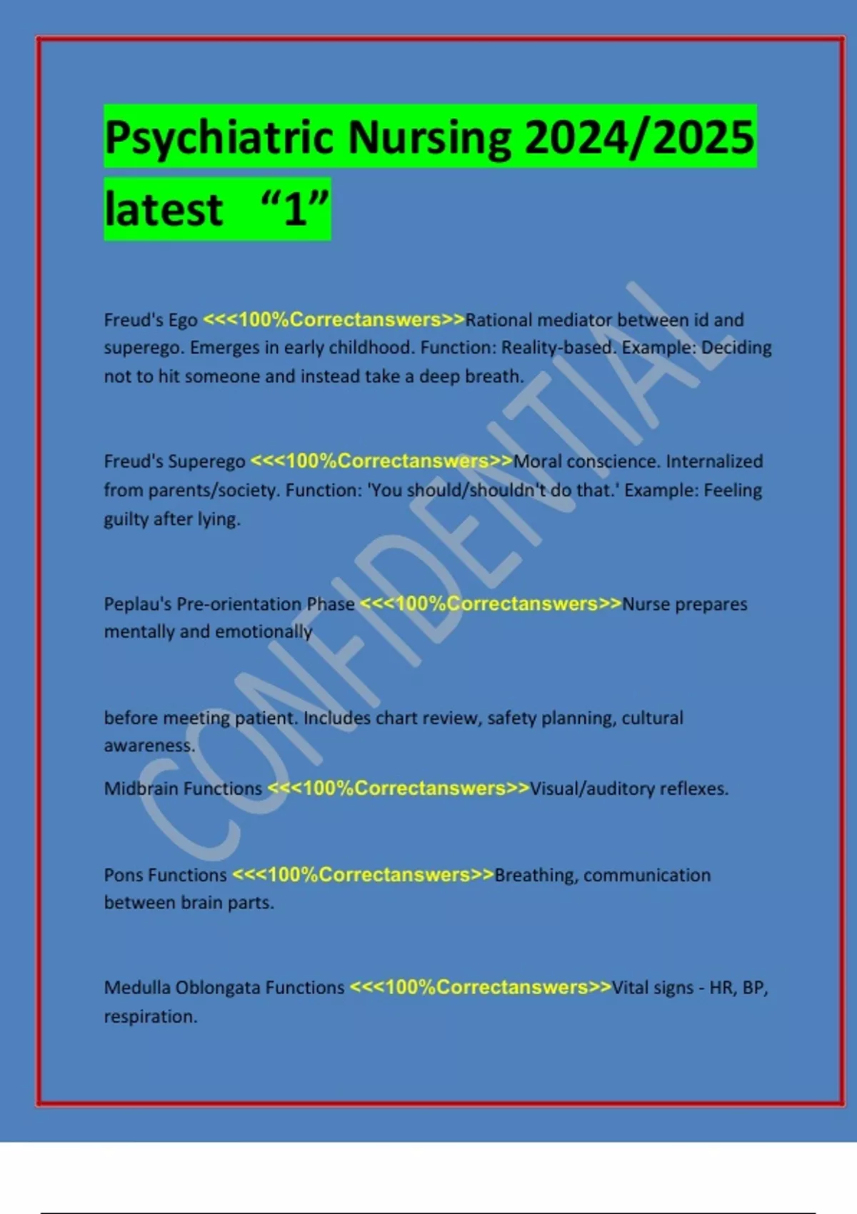 Freud's Superego <<<100%Correctanswers>>Moral conscience. Internalized