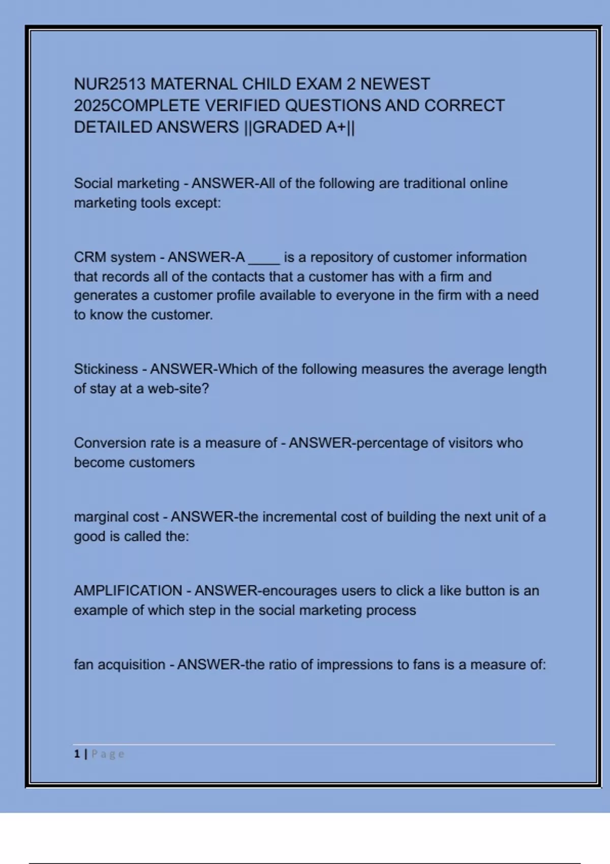 NUR2513 MATERNAL CHILD EXAM 2 NEWEST