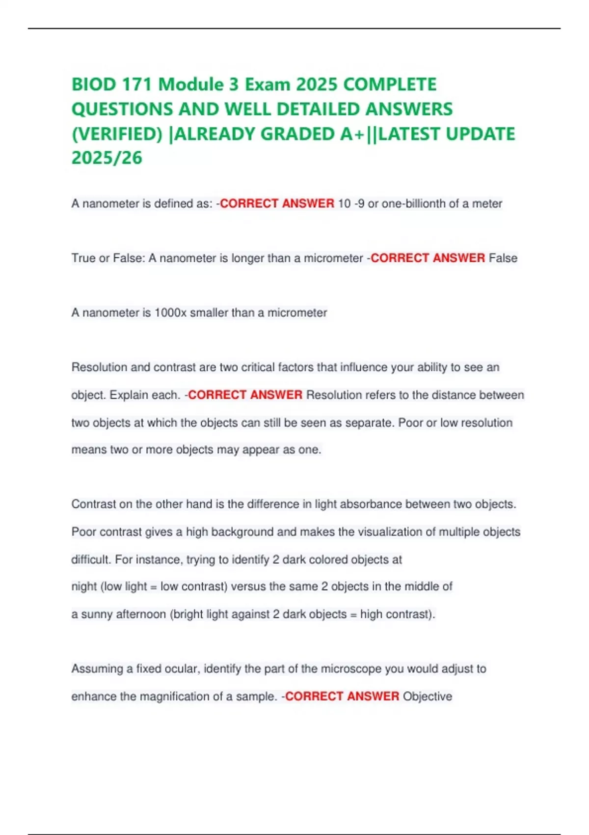 BIOD 171 Module 3 Exam 2025 COMPLETE
