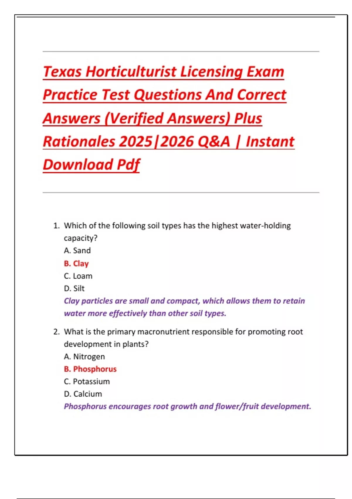 1. Which of the following soil types has the highest water-holding