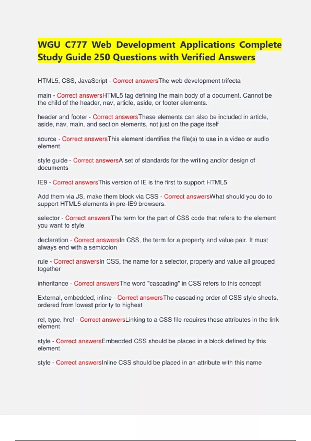 WGU C777 Web Development Applications Complete Study Guide 250 Questions with Verified Answers
