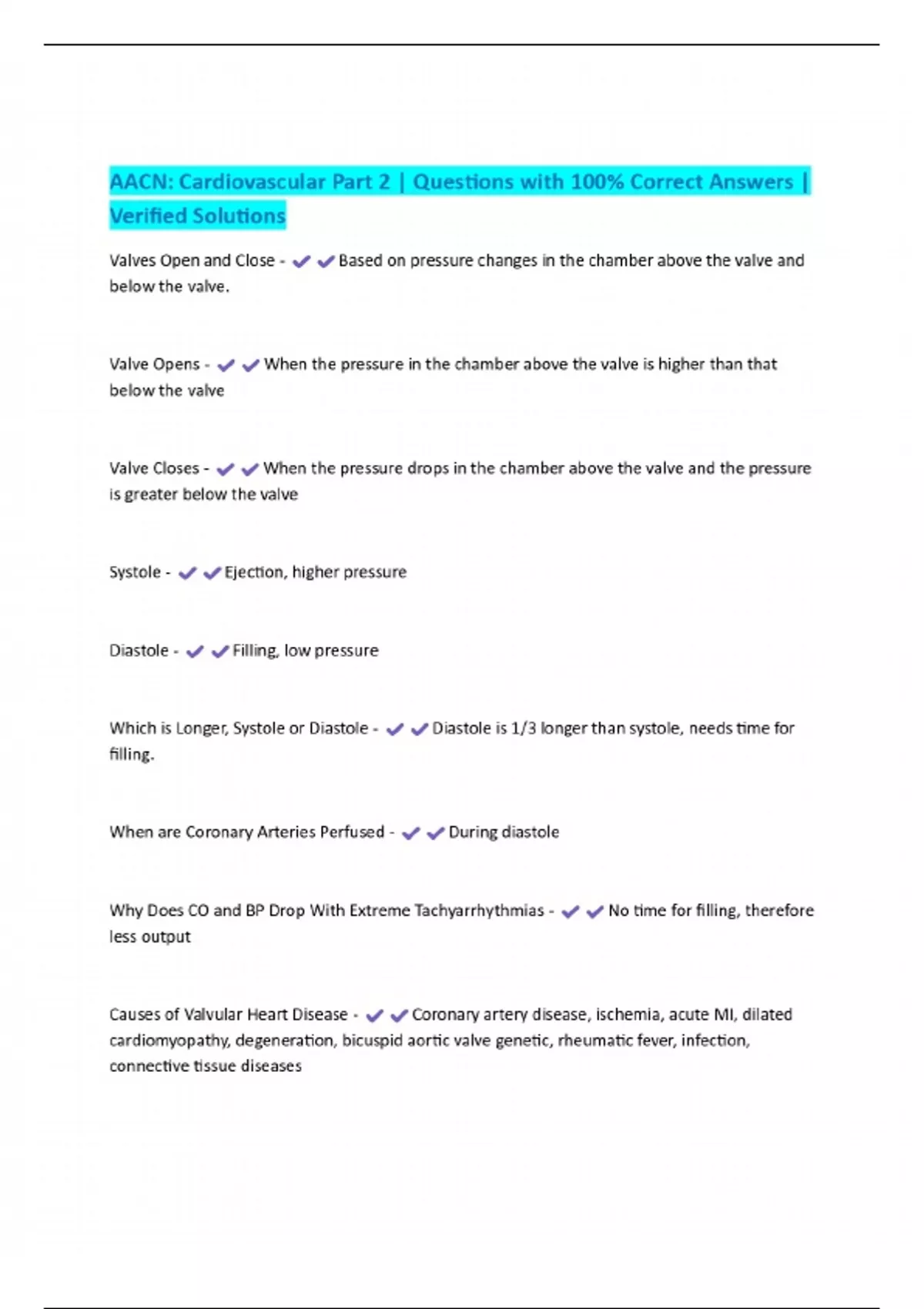 AACN: Cardiovascular Part 2 | Questions with 100% Correct Answers | Verified Solutions