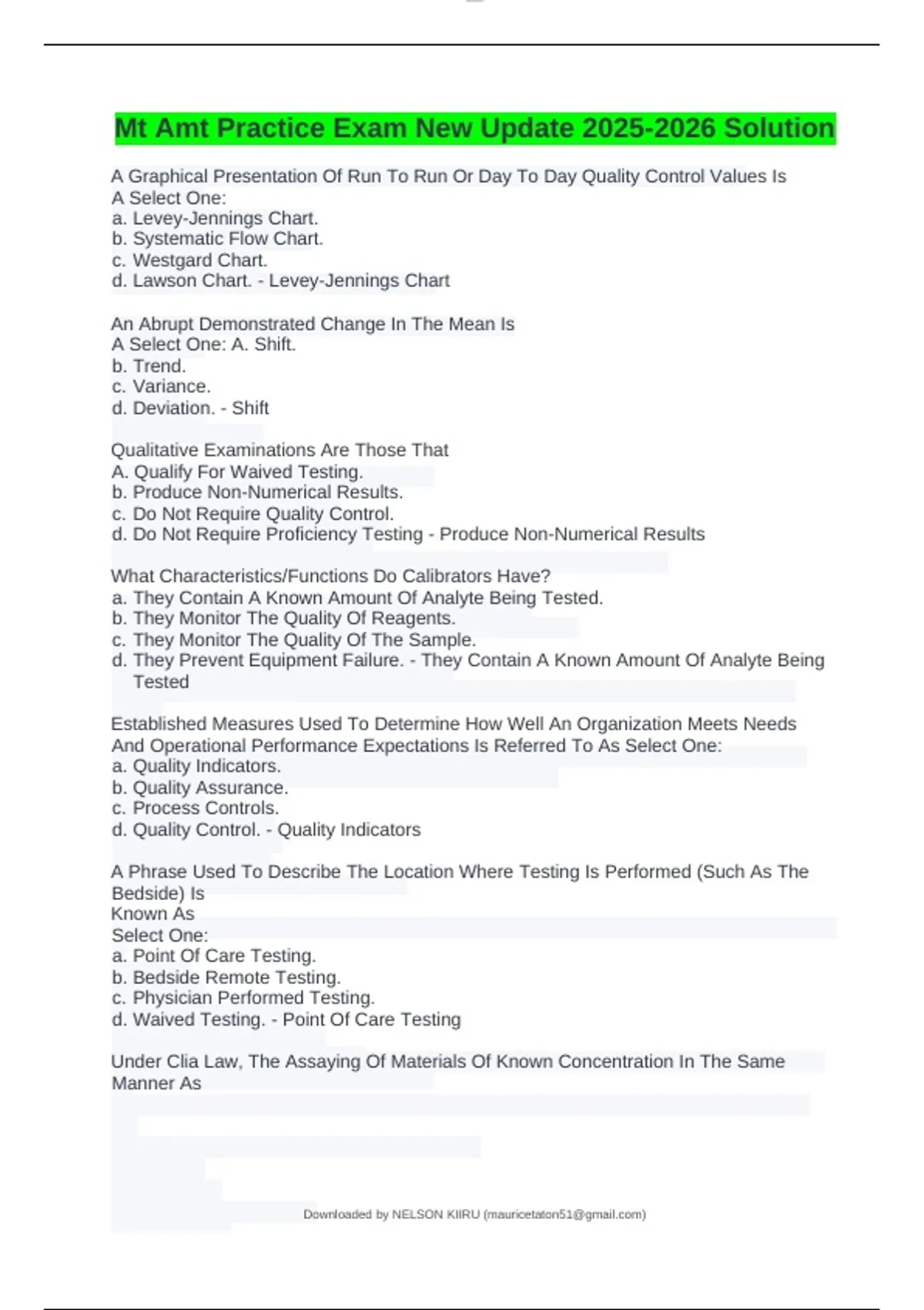 Mt Amt Practice Exam New Update 2025-2026 Solution