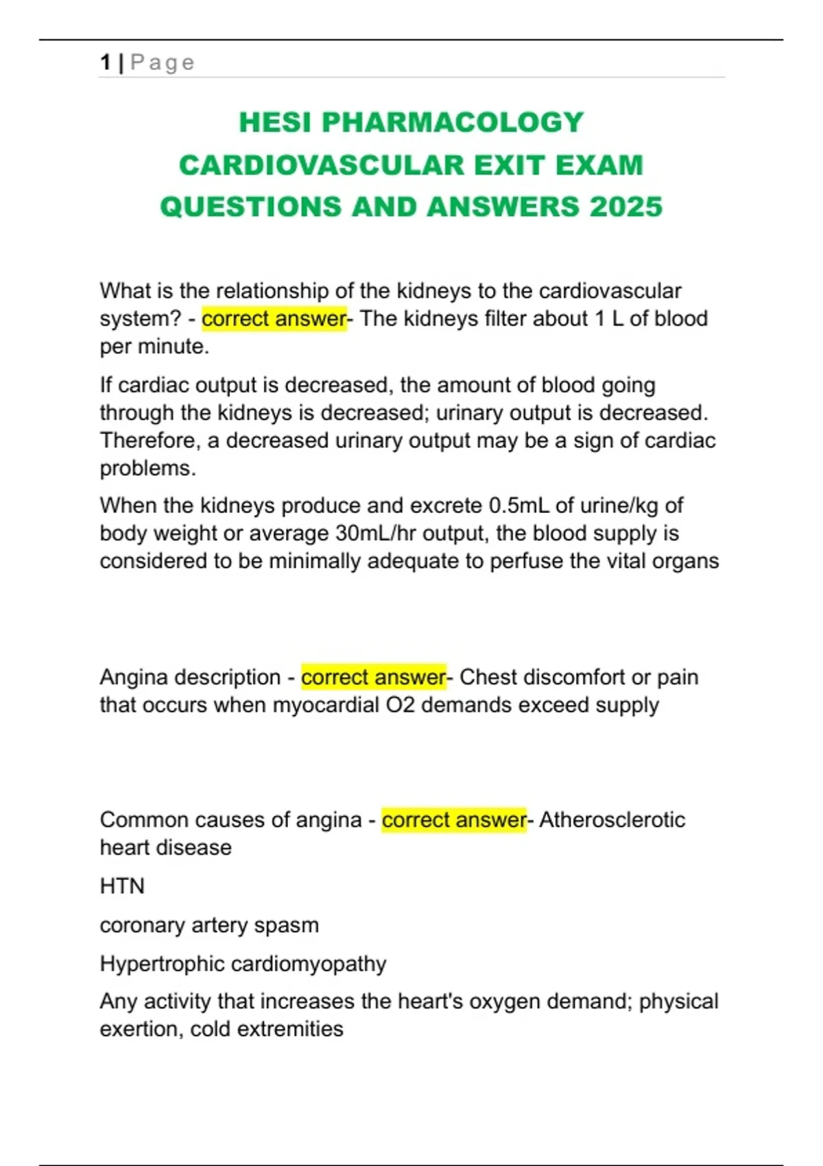 CARDIOVASCULAR EXIT EXAM
