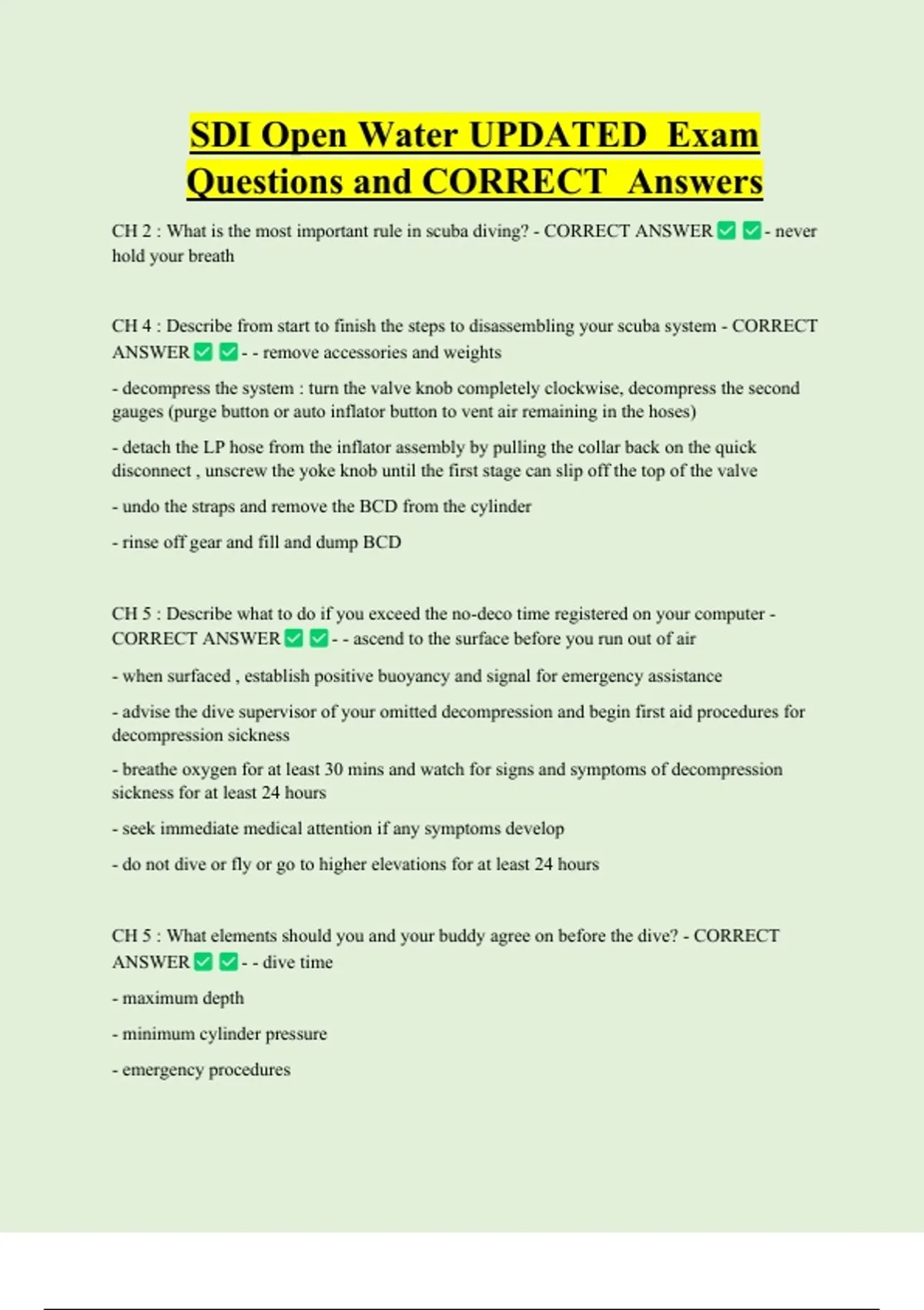 CH 2 : What is the most important rule in scuba diving? - CORRECT ANSWER - never