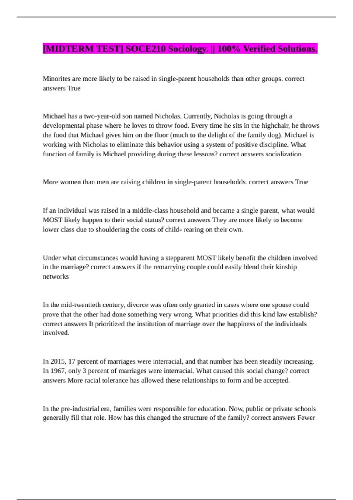 correct answers It prioritized the institution of marriage over the happiness of the individuals