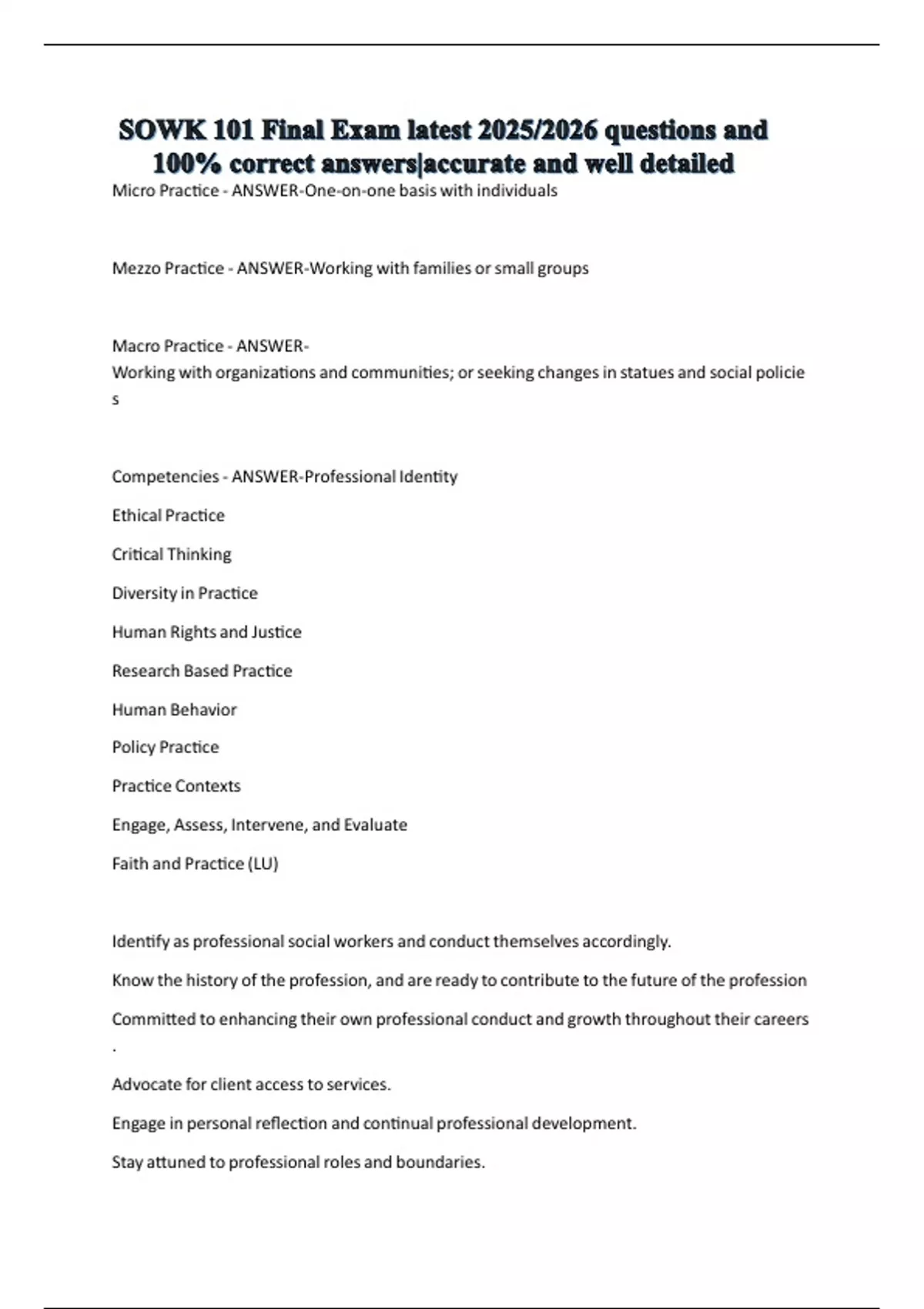 SOWK 101 Final Exam latest 2025/2026 questions and 100% correct answers|accurate and well detailed