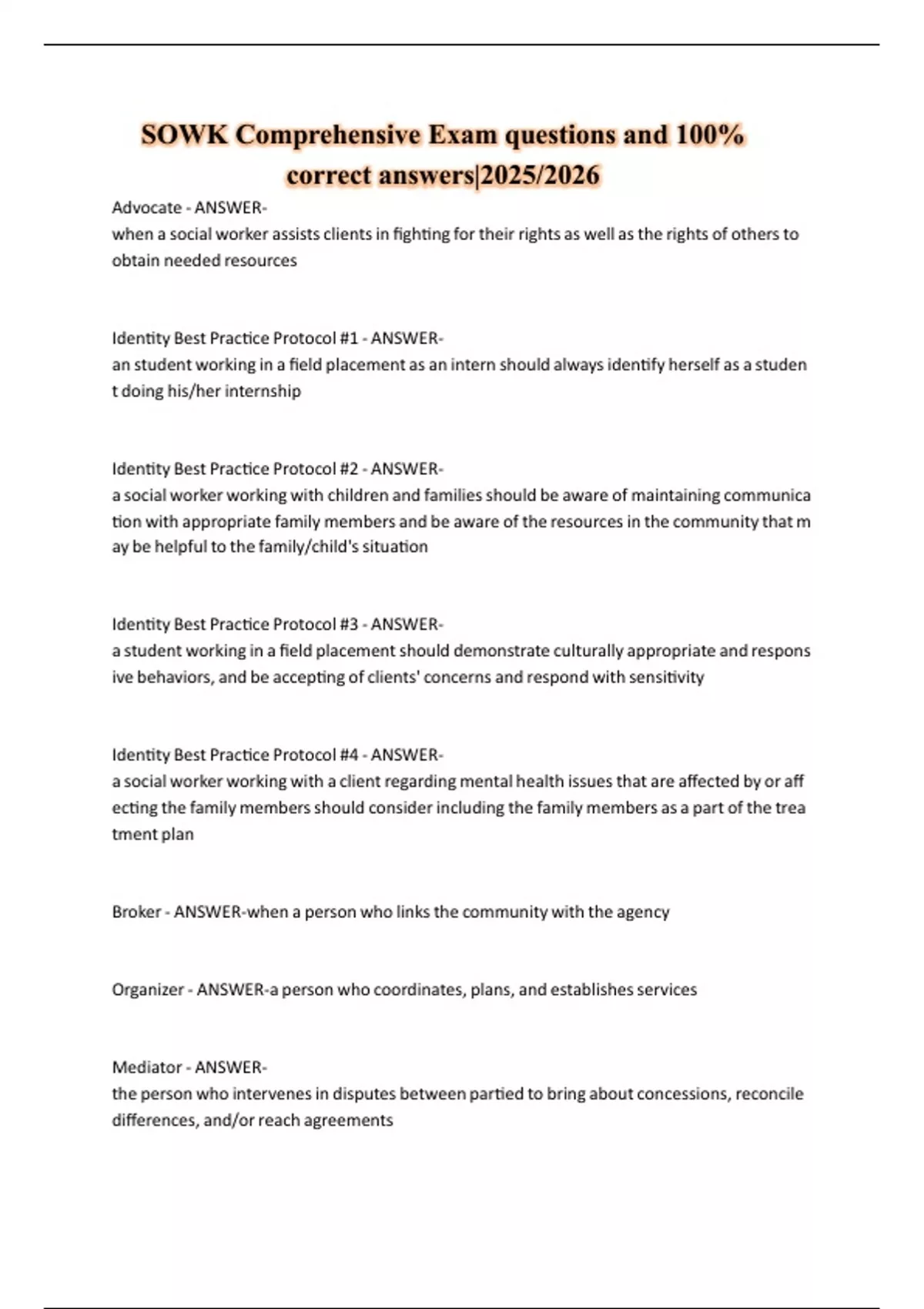 SOWK Comprehensive Exam questions and 100% correct answers|2025/2026