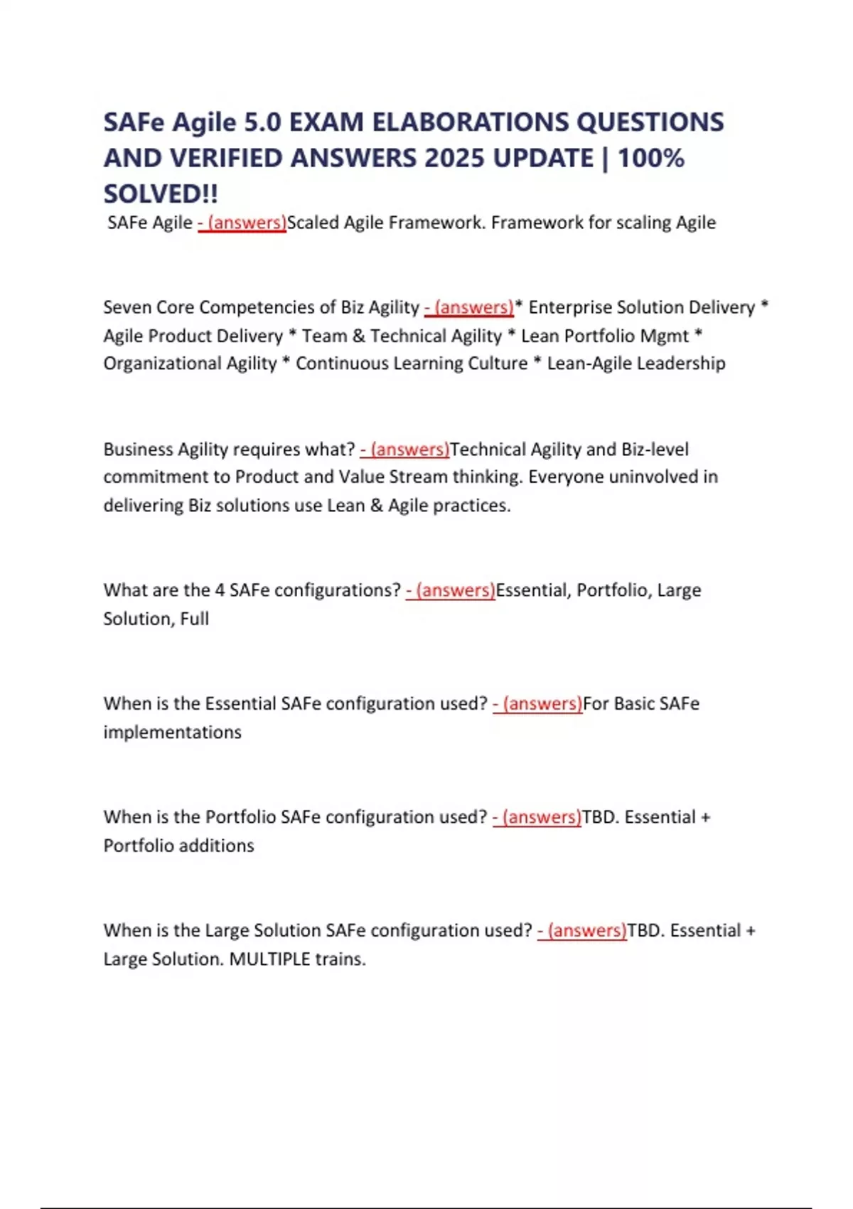 When is the Large Solution SAFe configuration used? - (answers)TBD. Essential +