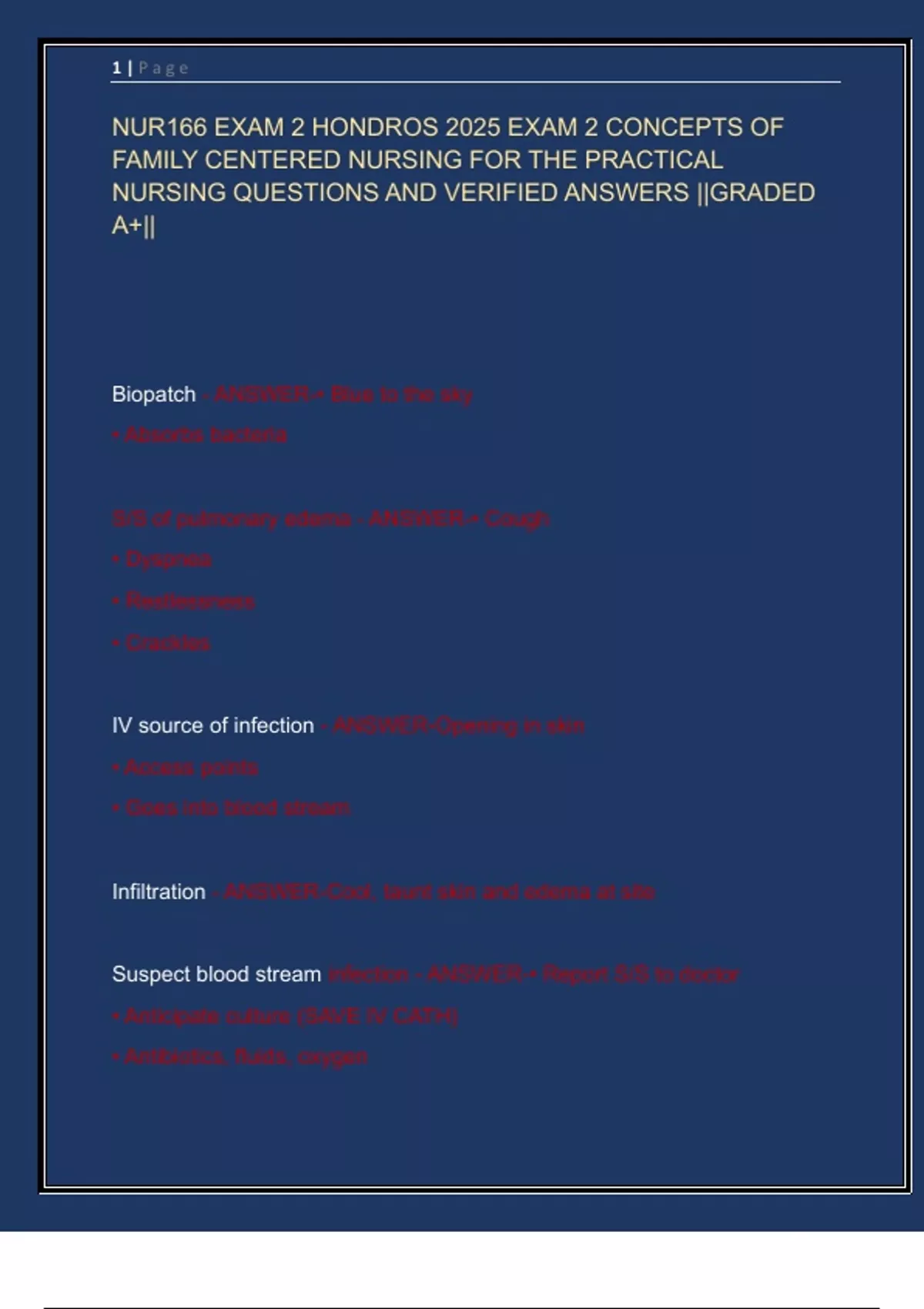 NUR166 EXAM 2 HONDROS 2025 EXAM 2 CONCEPTS OF