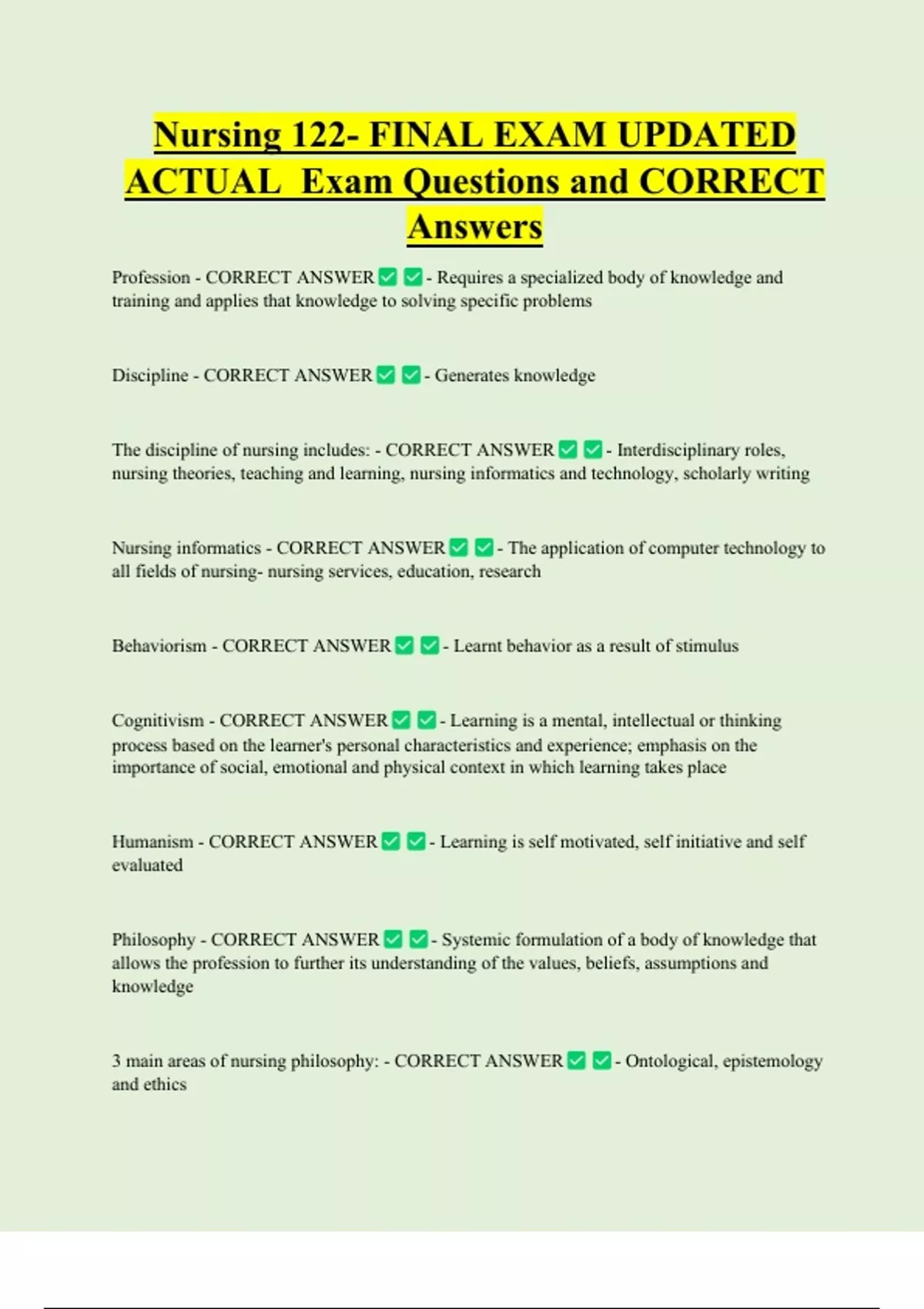 ACTUAL Exam Questions and CORRECT